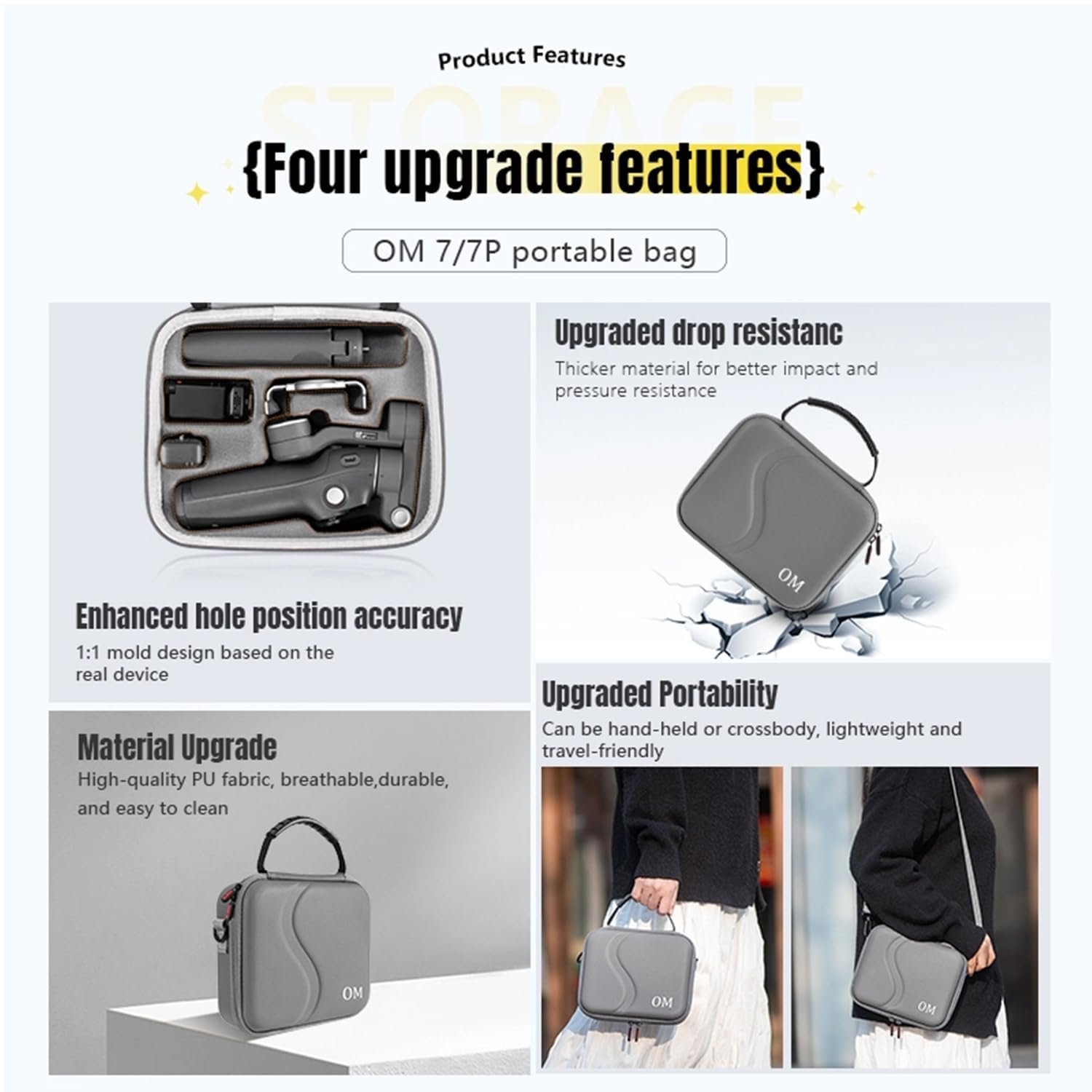 Osmo Mobile 7P Case, Portable PU Shoulder Bag for DJI OM 7 Pro/7 Gimbal Stabiliser Travel Case for DJI Osmo Mobile 7/7P Accessories (Gimbal not Included)