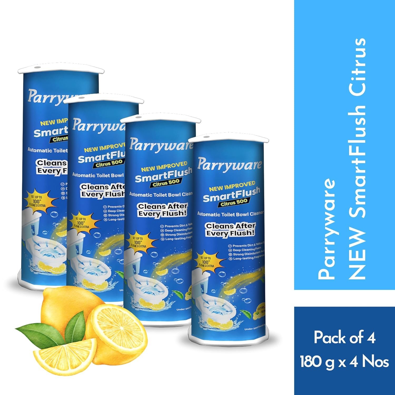 Parryware SmartFlush In-Cistern Automatic Toilet Bowl Cleaner – Citrus 500 I PACK OF 4 I Lasts upto 600* Flushes | 99.9% Disinfection | Cleans after every flushes | FCSF0103