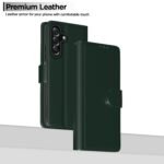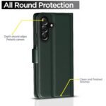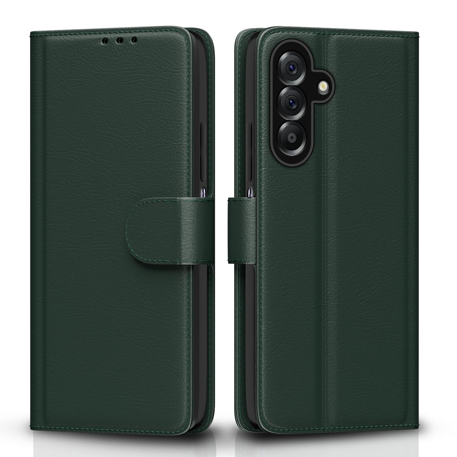 Invest in your brand new Samsung Galaxy A17 5G device’s protection today through this fit to use executive Green leather stand wallet case flip cover and save yourself from the heartbreak and agony of watching the scratches and damages on your device multiply periodically. This sleek executive flip cover case is designed to a perfect fit on your mobile and smooth surface further adds to its polished looks. This pouch comes with inner shell back cover that does not break easily and aids in shock absorption during impacts. This wallet case comes with card slots to store receipts, cards or emergency cash. You can now video chat or watch movies hands free in landscape mode with the wallet stand. Perfect and precise cutouts allow easy access to all ports.