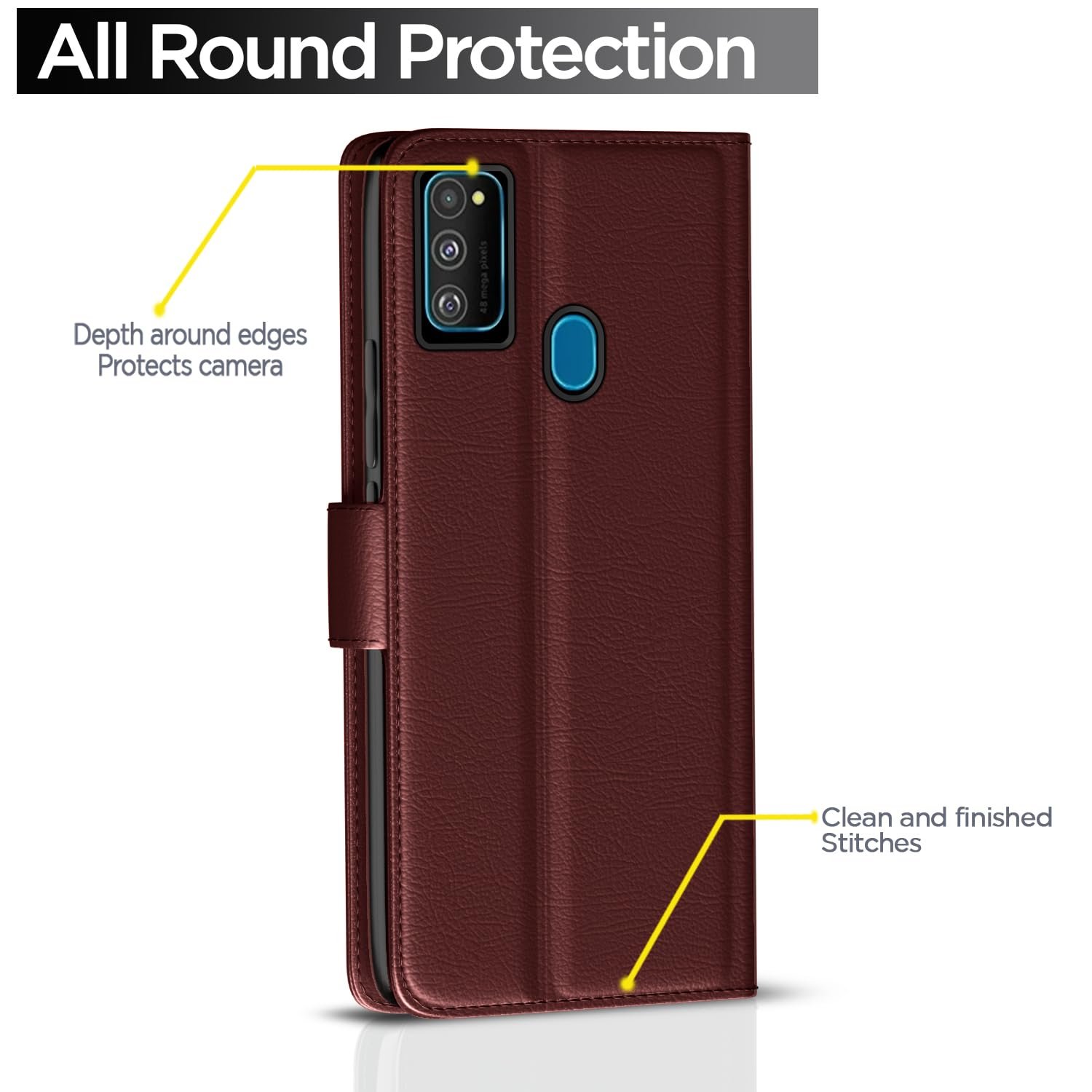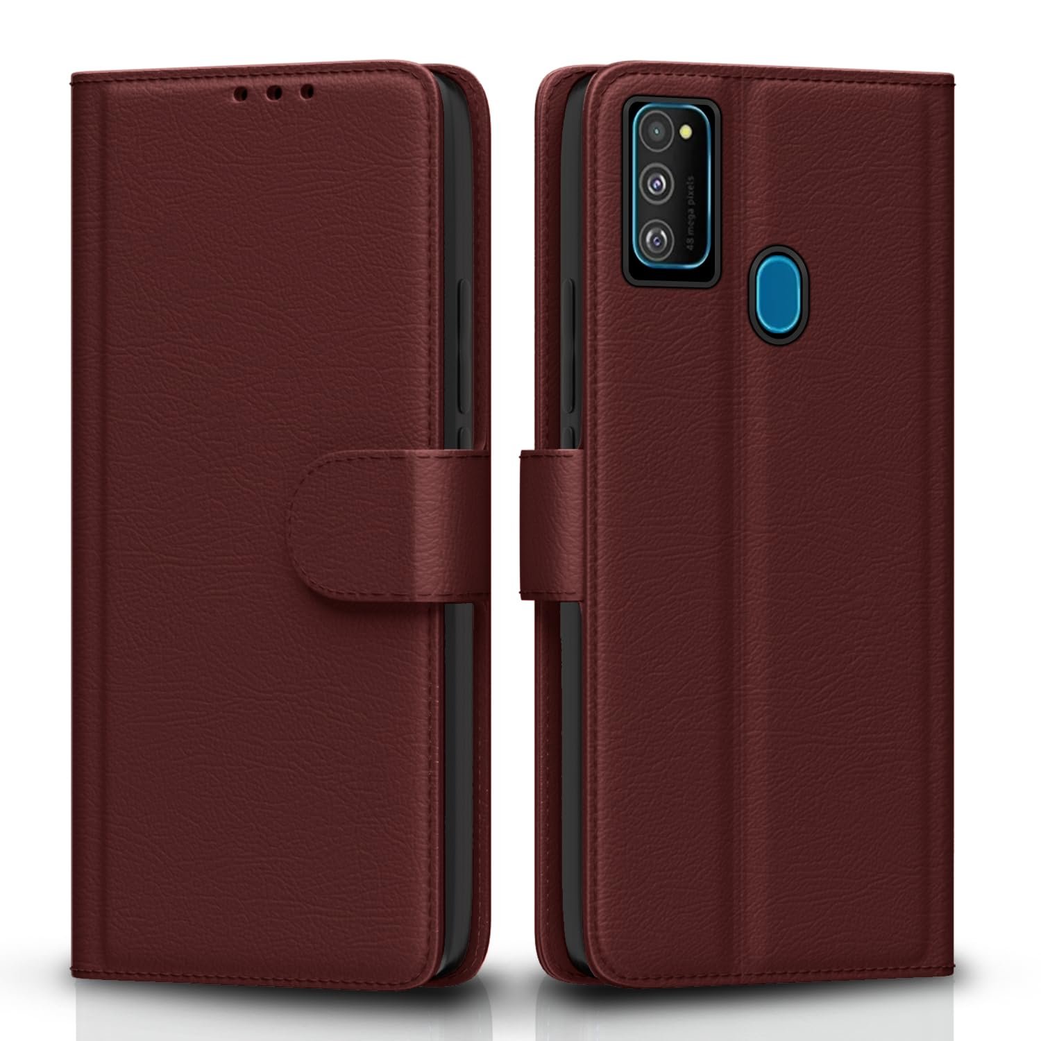 Pikkme Flip Cover for Samsung Galaxy M30s / M21 / M21 2021 Leather Finish | Inside TPU with Card Pockets | Wallet Stand and Shock Proof | Complete Protection Flip Case(Brown)