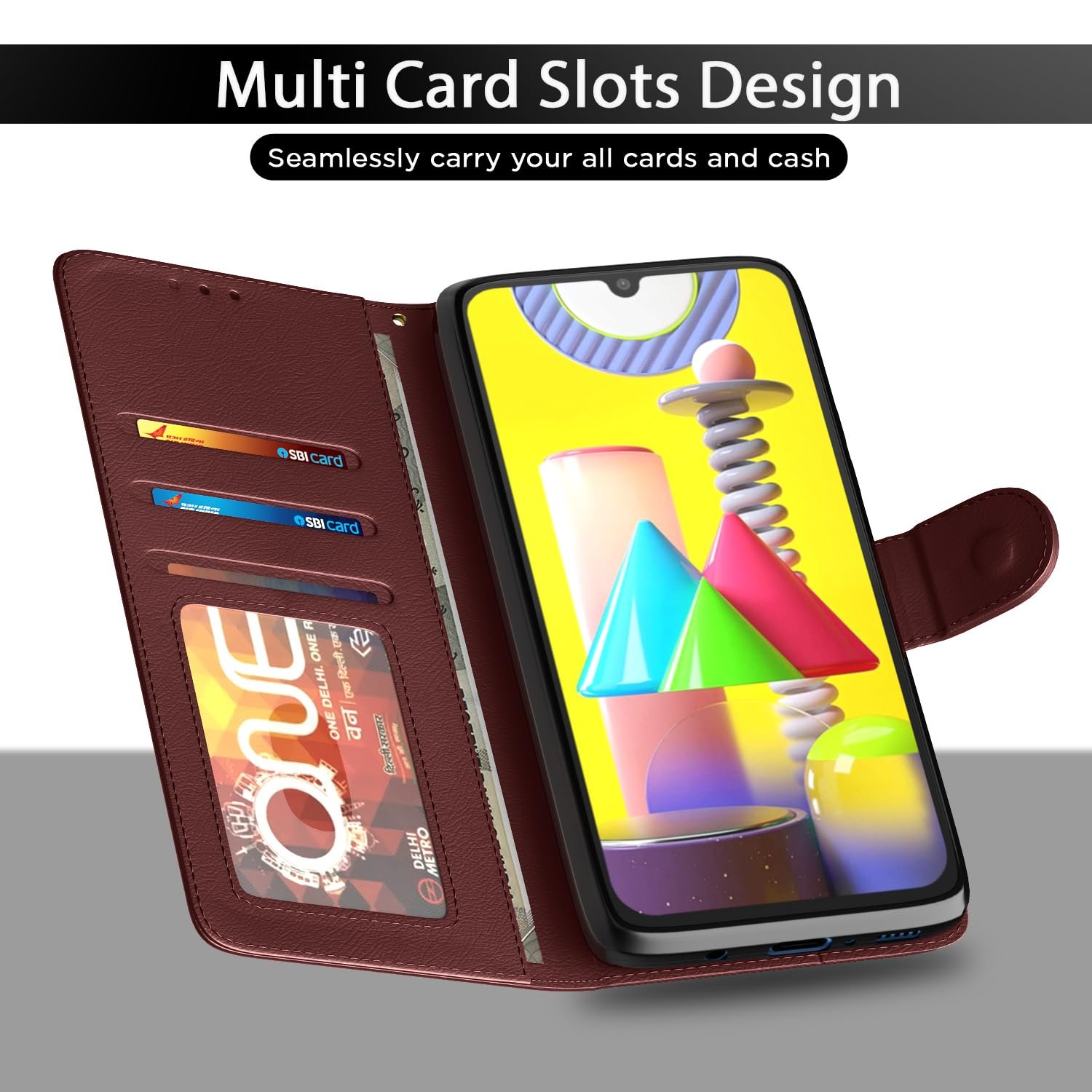 Kick back and relax with a kick-stand engineered into the design of Pikkme leather case. Become a walking mobile theater for quick media sessions on the go Enjoy entertainment while you eat and off your Samsung Galaxy M30s / M21 / M21 2021 screen