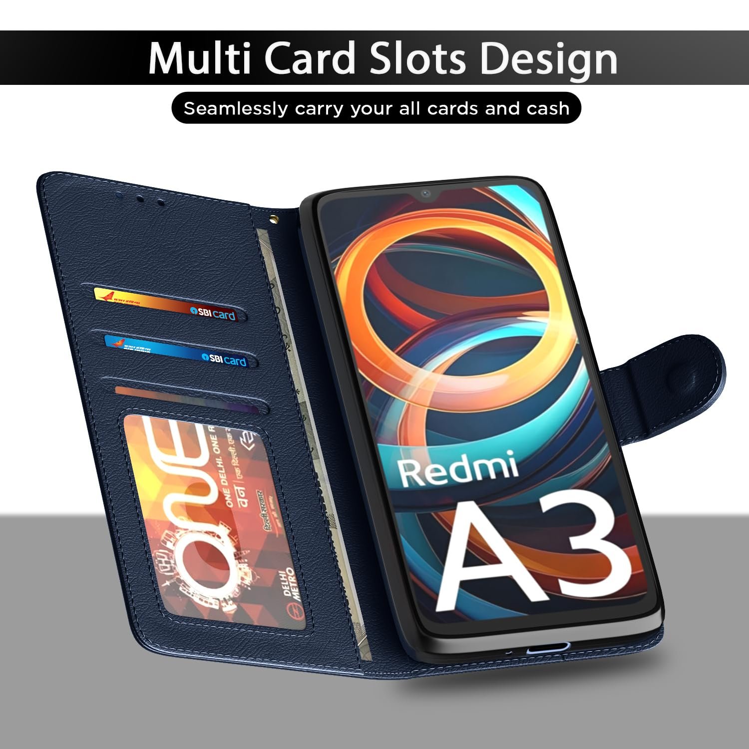 Invest in your brand new Redmi A3 (2024) device’s protection today through this fit to use executive Blue leather stand wallet case flip cover and save yourself from the heartbreak and agony of watching the scratches and damages on your device multiply periodically. This sleek executive flip cover case is designed to a perfect fit on your mobile and smooth surface further adds to its polished looks. This pouch comes with inner shell back cover that does not break easily and aids in shock absorption during impacts. This wallet case comes with card slots to store receipts, cards or emergency cash. You can now video chat or watch movies hands free in landscape mode with the wallet stand. Perfect and precise cutouts allow easy access to all ports.