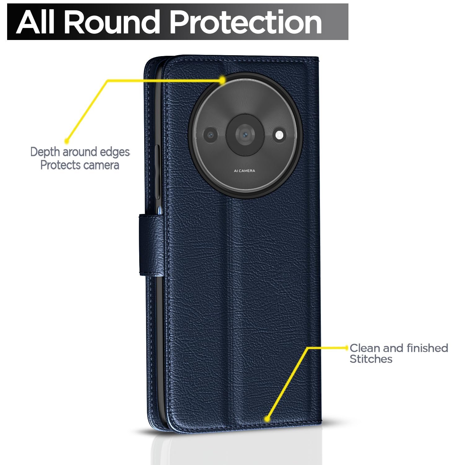 Kick back and relax with a kick-stand engineered into the design of Pikkme leather case. Become a walking mobile theater for quick media sessions on the go Enjoy entertainment while you eat and off your Redmi A3 (2024) screen