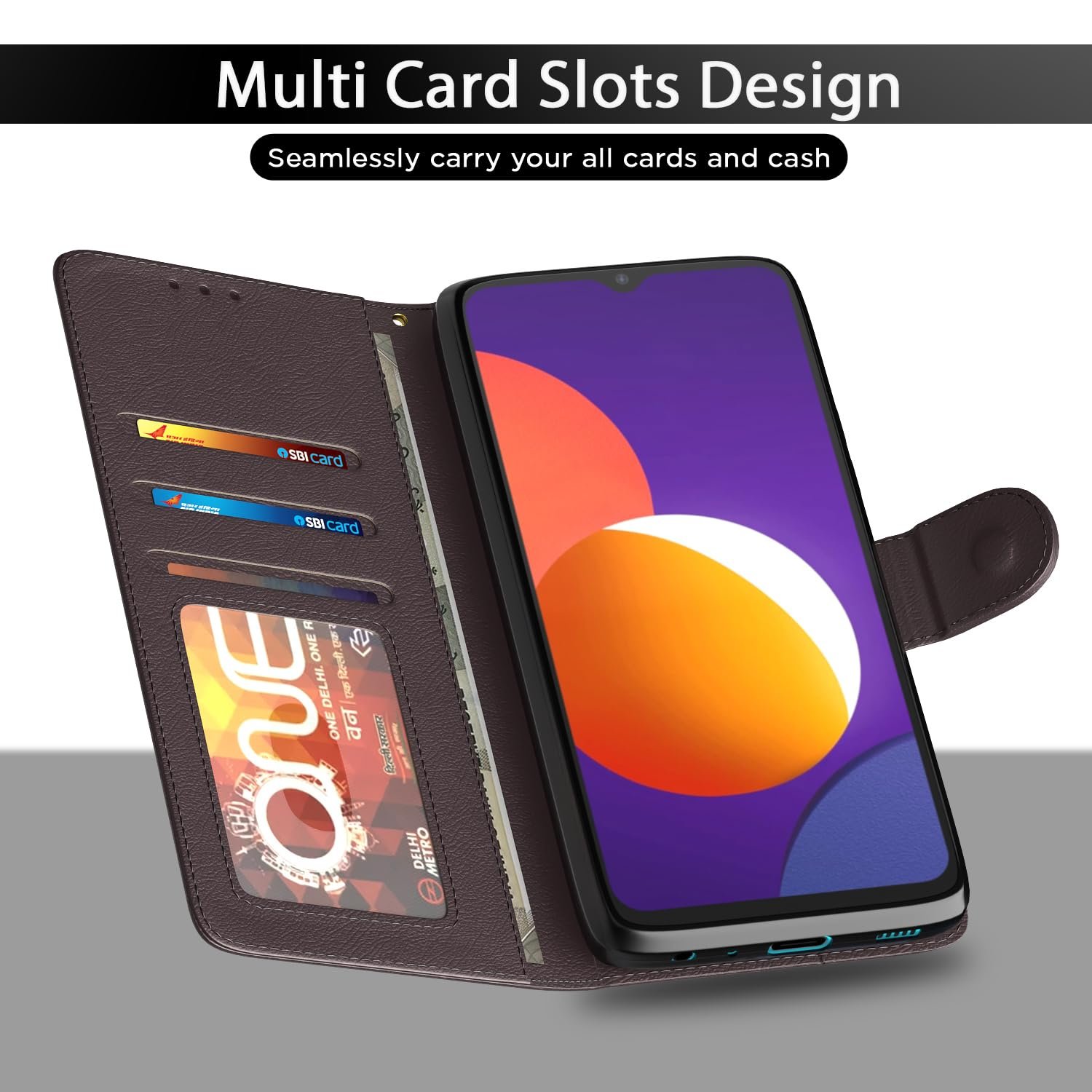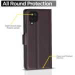 Invest in your brand new Samsung Galaxy M12 / F12 / A12 device’s protection today through this fit to use executive brown leather stand wallet case flip cover and save yourself from the heartbreak and agony of watching the scratches and damages on your device multiply periodically. This sleek executive flip cover case is designed to a perfect fit on your mobile and smooth surface further adds to its polished looks. This pouch comes with inner shell back cover that does not break easily and aids in shock absorption during impacts. This wallet case comes with card slots to store receipts, cards or emergency cash. You can now video chat or watch movies hands free in landscape mode with the wallet stand. Perfect and precise cutouts allow easy access to all ports.
