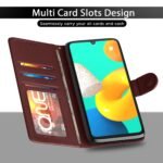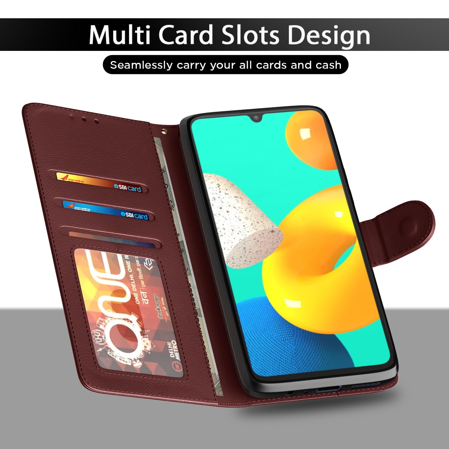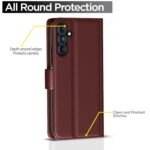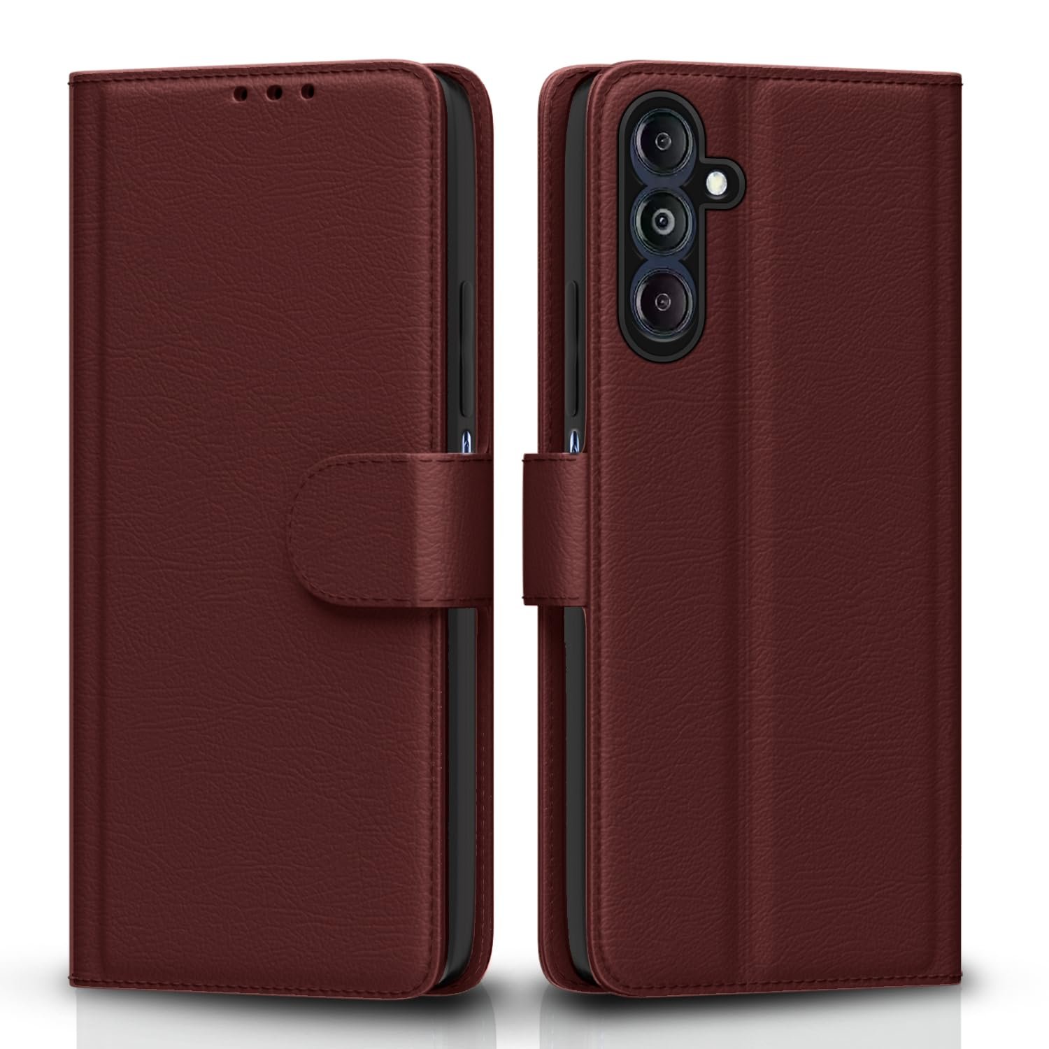 Invest in your brand new Samsung Galaxy M14 5G device’s protection today through this fit to use executive brown leather stand wallet case flip cover and save yourself from the heartbreak and agony of watching the scratches and damages on your device multiply periodically. This sleek executive flip cover case is designed to a perfect fit on your mobile and smooth surface further adds to its polished looks. This pouch comes with inner shell back cover that does not break easily and aids in shock absorption during impacts. This wallet case comes with card slots to store receipts, cards or emergency cash. You can now video chat or watch movies hands free in landscape mode with the wallet stand. Perfect and precise cutouts allow easy access to all ports.