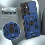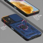 Pikkme Polycarbonate D10 Tough Armor Bumper Case | 360 Protection Case | Sliding Camera Shield Cover & Ring Holder Stand Back Cover for Samsung Galaxy M35 5G (Blue)