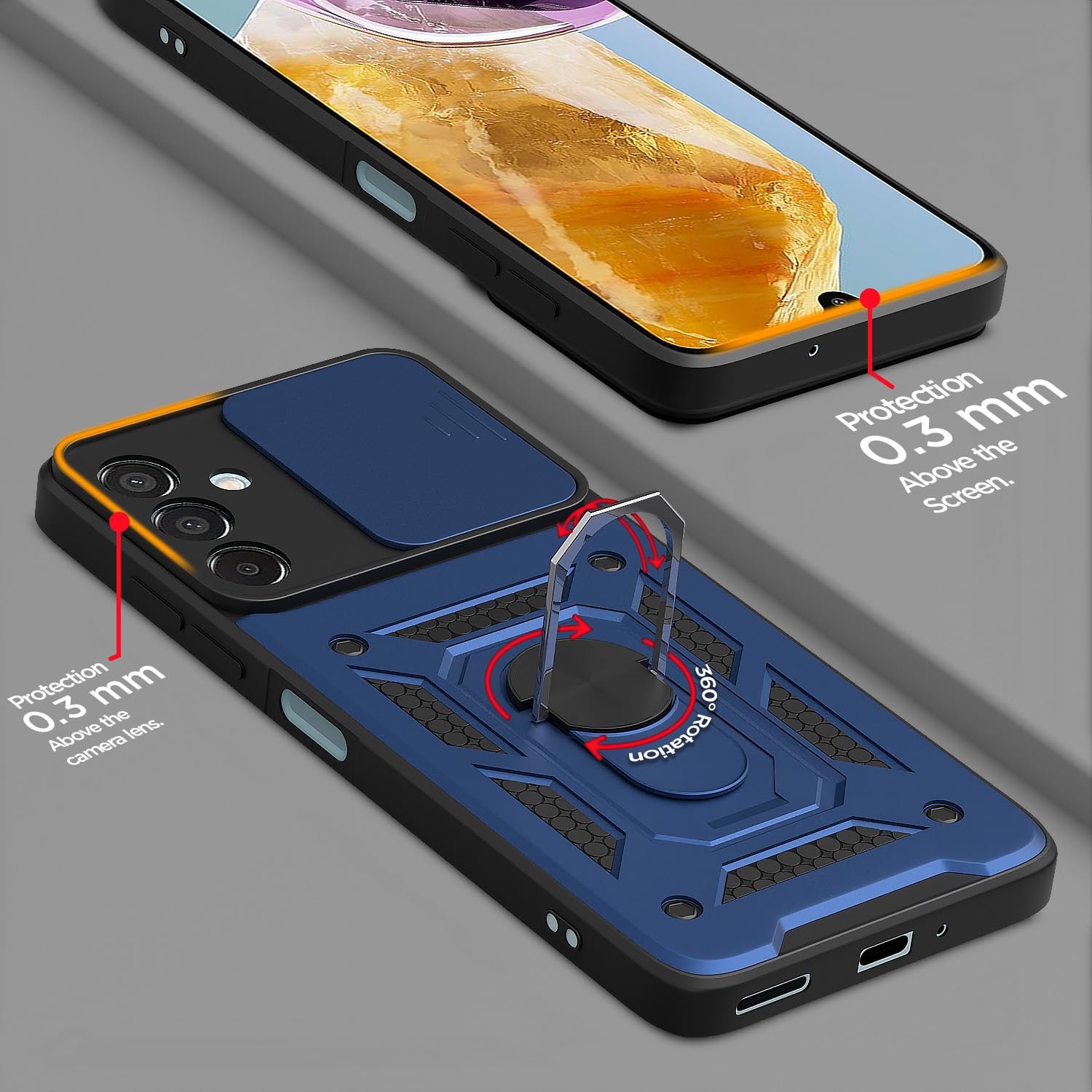 Ultimate Protection: Your phone is shielded from incidental drops and impacts by the Anti-Skid Texture and Anti-Drop Ring Grip. The back’s robust construction is able to endure all of life’s little dings and scratches.