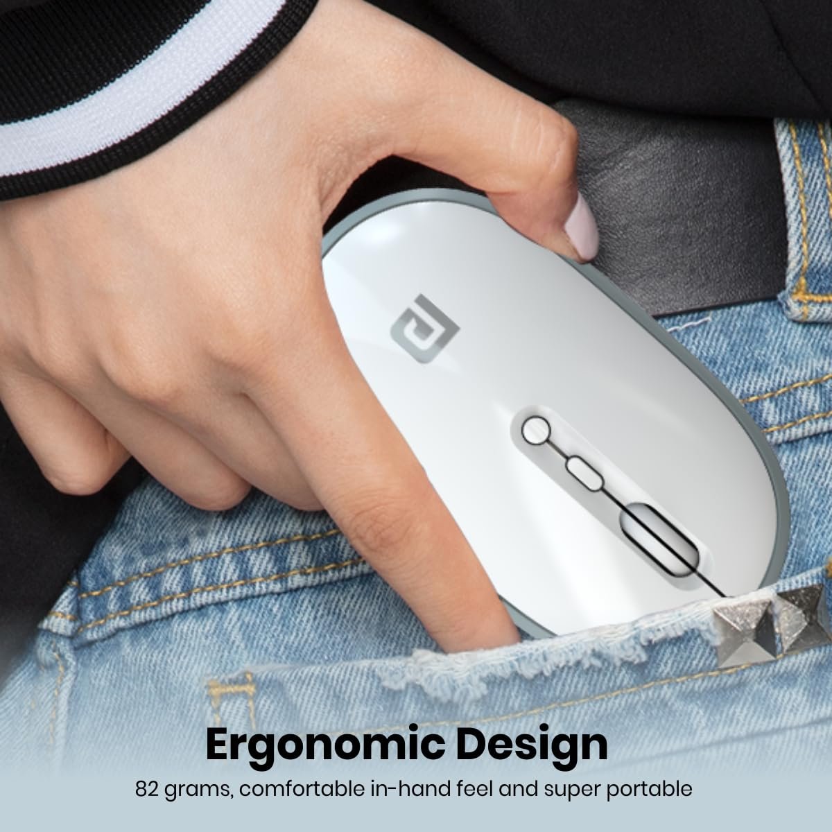 Clever Design: The 5-button design with a left-right click, scroll wheel, DPI button and another button to switch between connections and devices (2.4 GHz and Bluetooth 5.3). The USB nano dongle fits in a slot designed inside the wireless mouse.