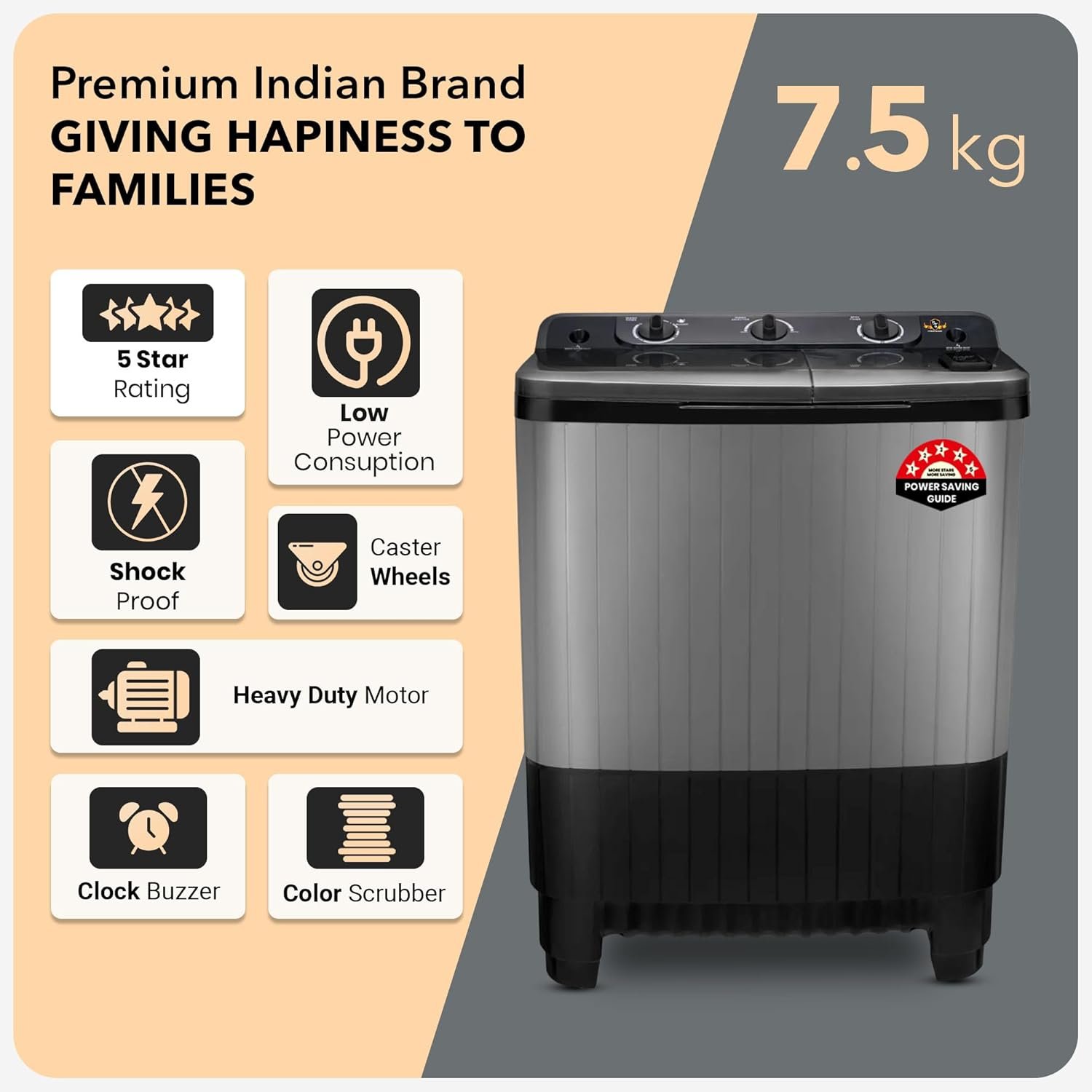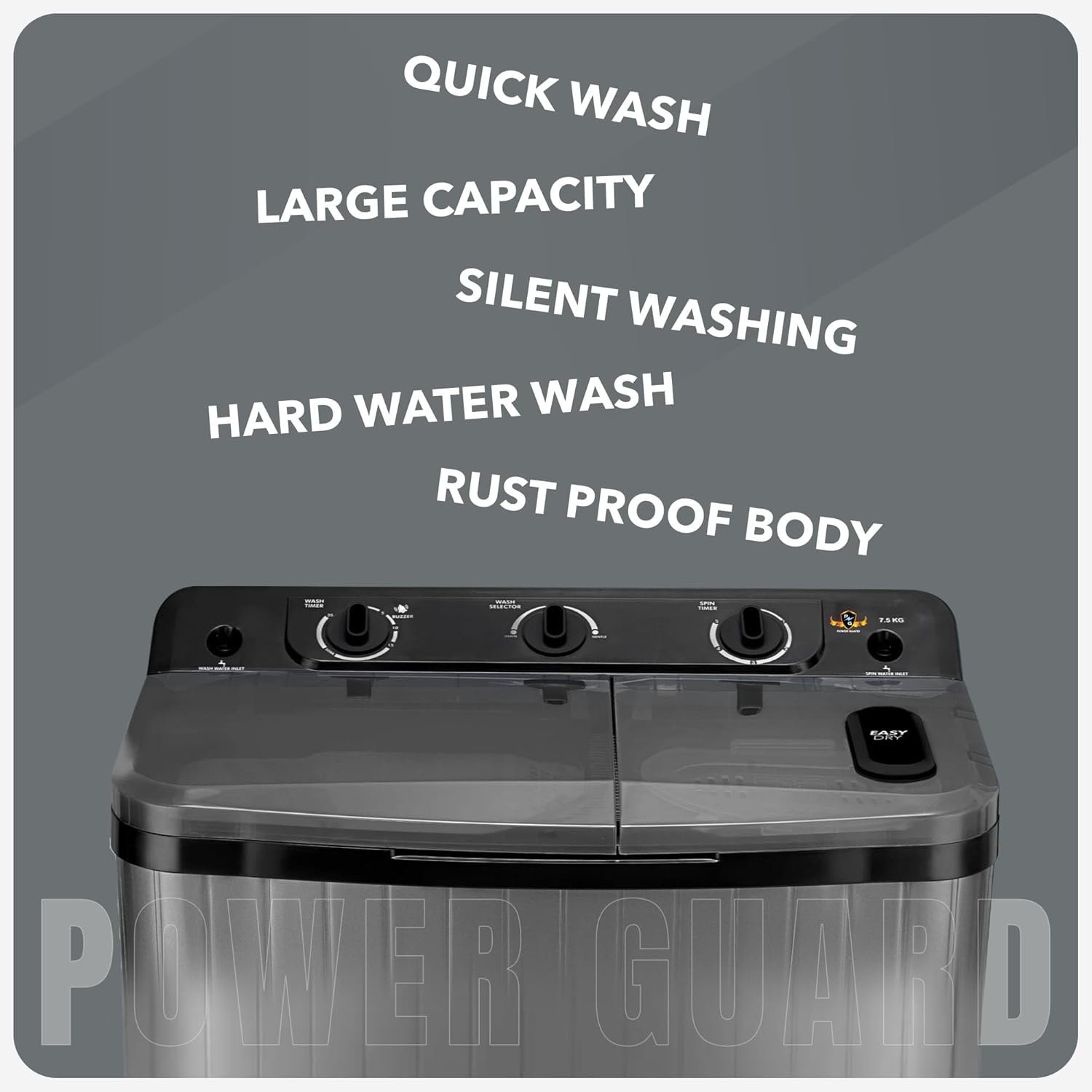 7.5 kg Capacity – Perfect for small to medium families, this washer tackles regular laundry loads efficiently.