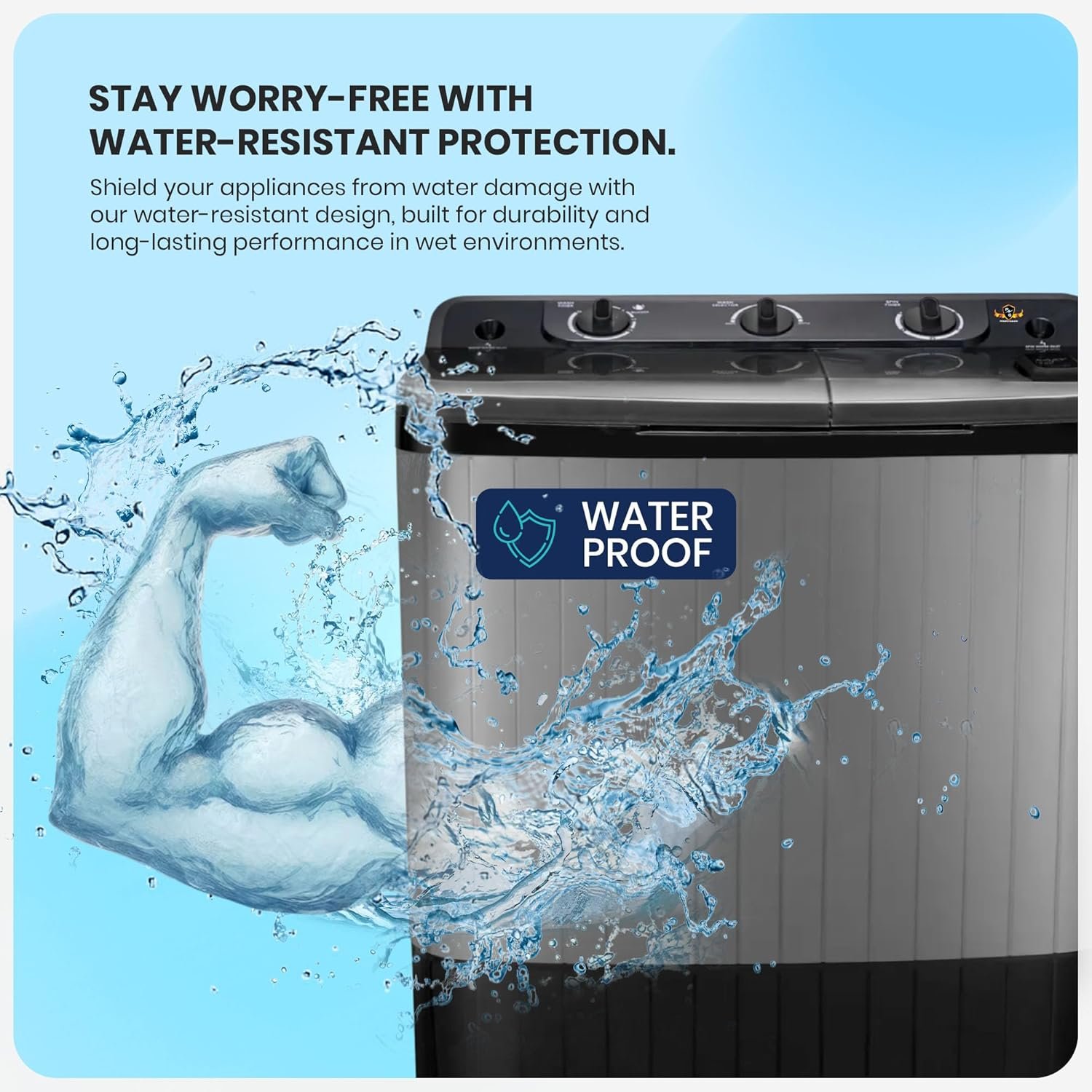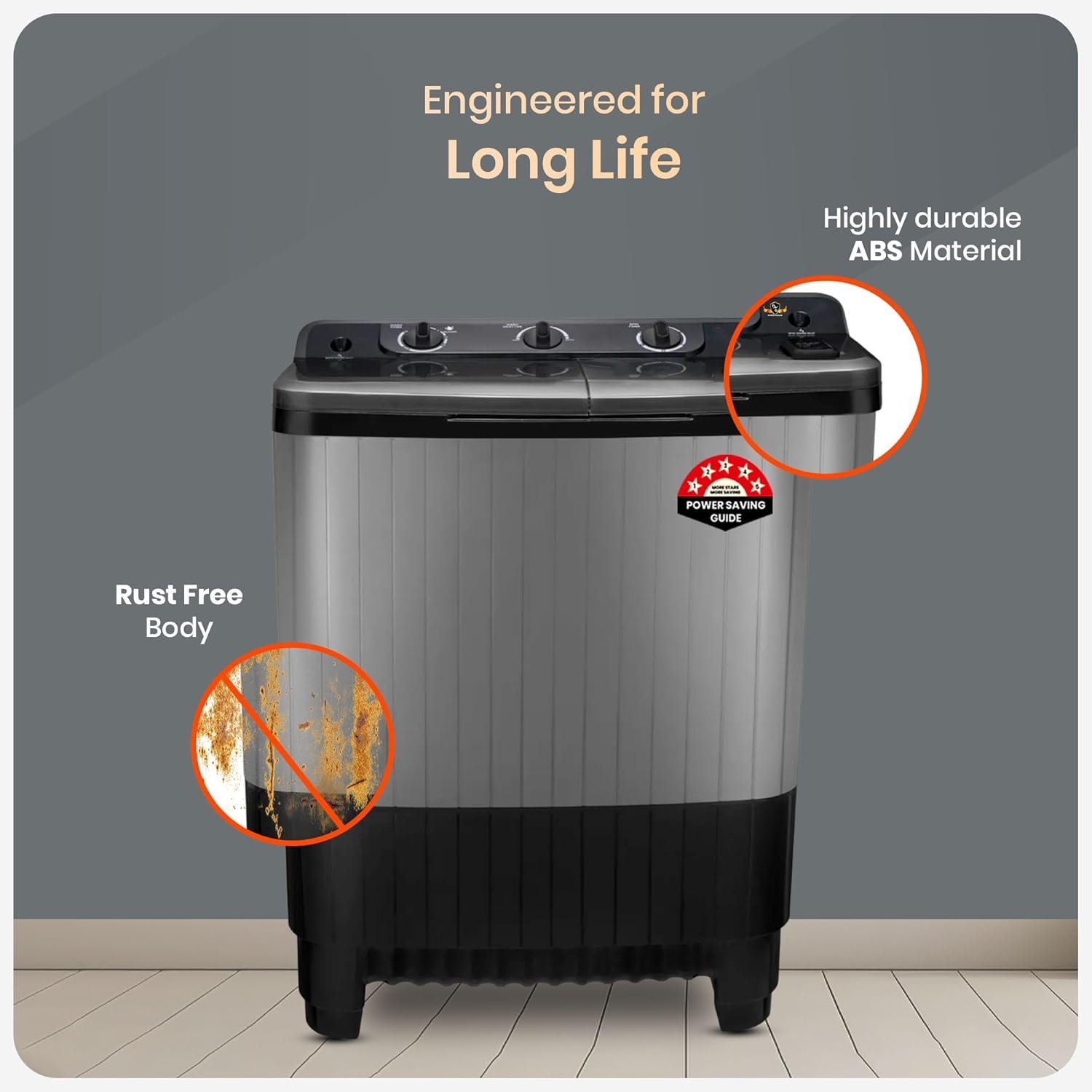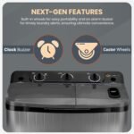 No need to worry about rust on your washing machine. It has a strong, rust-proof plastic body that won’t corrode. This makes it durable and keeps it looking new for years.