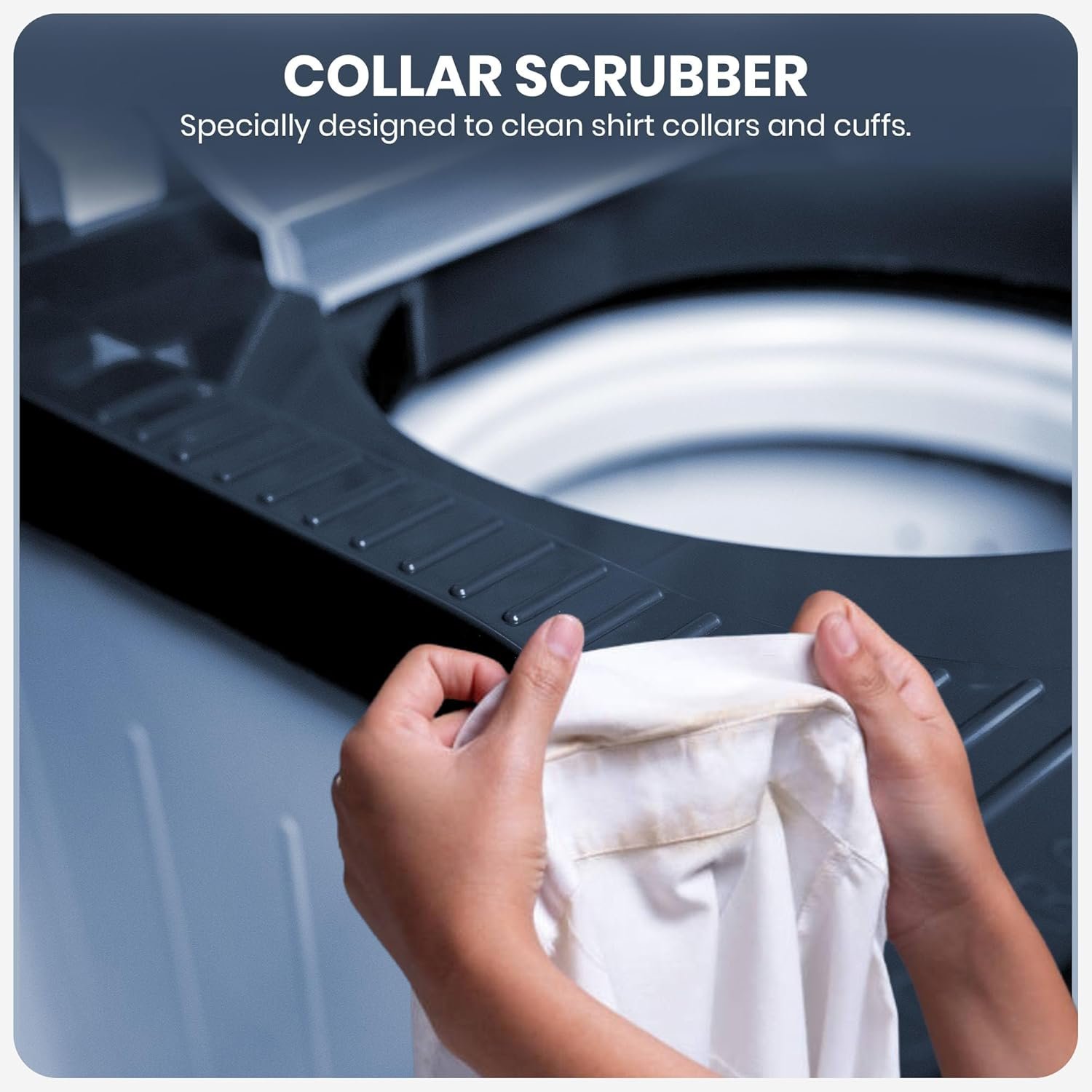 The Collar Scrubber provides a powerful scrubbing action to remove tough dirt and stains from collars and cuffs effortlessly. Say goodbye to stubborn grime and enjoy a spotless clean with ease!