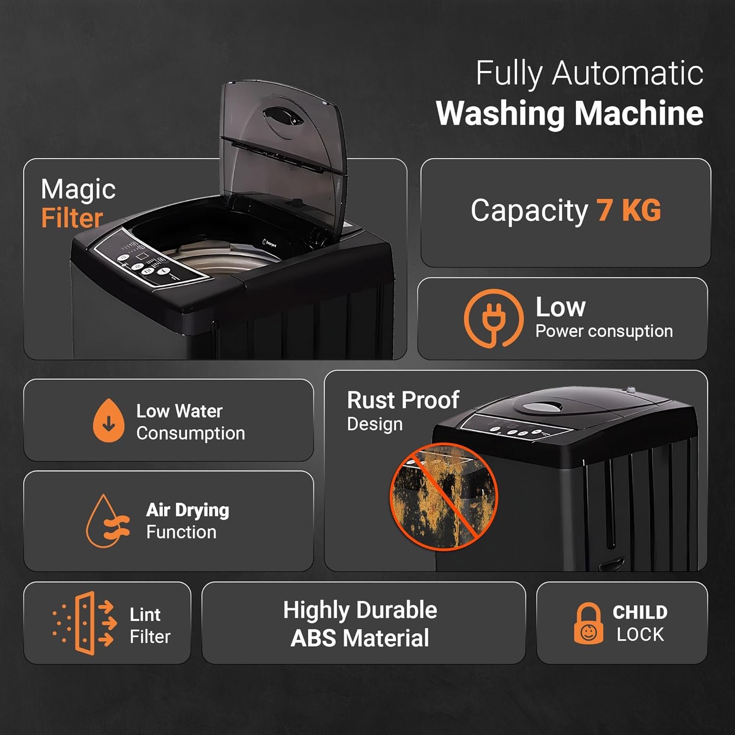 Power Guard 7 Kg Fully Automatic Top Load Washing Machine 5 Star with Oceanus Wave Drum, Fuzzy Logic Control (PG70WMFATL-01, Express Wash, Air Dry, Soft Close Lid, Black)
