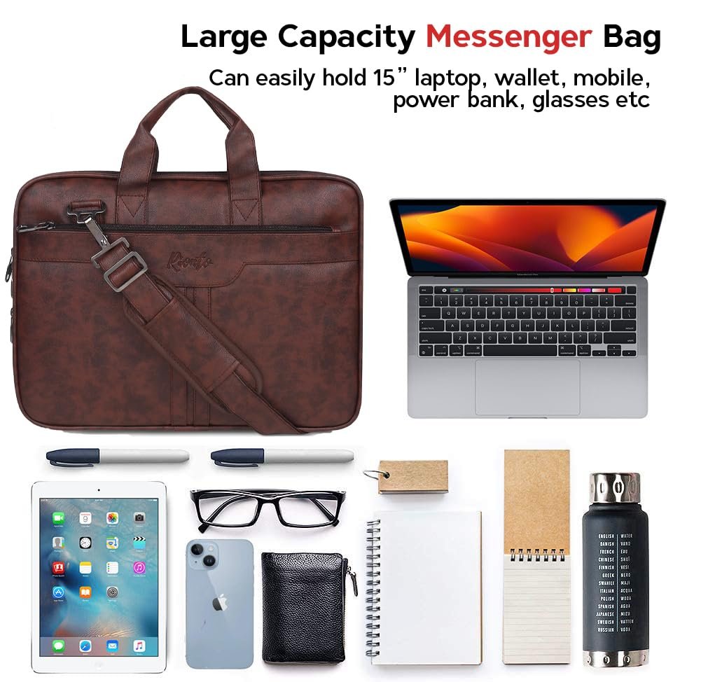 UNIVERSAL LAPTOP COMPATIBILITY: This 15.6 inch leather office bags for man is designed to securely fit devices from top brands like Dell, HP, Asus, MacBook, Acer, and Lenovo. Whether for work, travel, or office use, it keeps your laptop protected and your essentials organized in style.