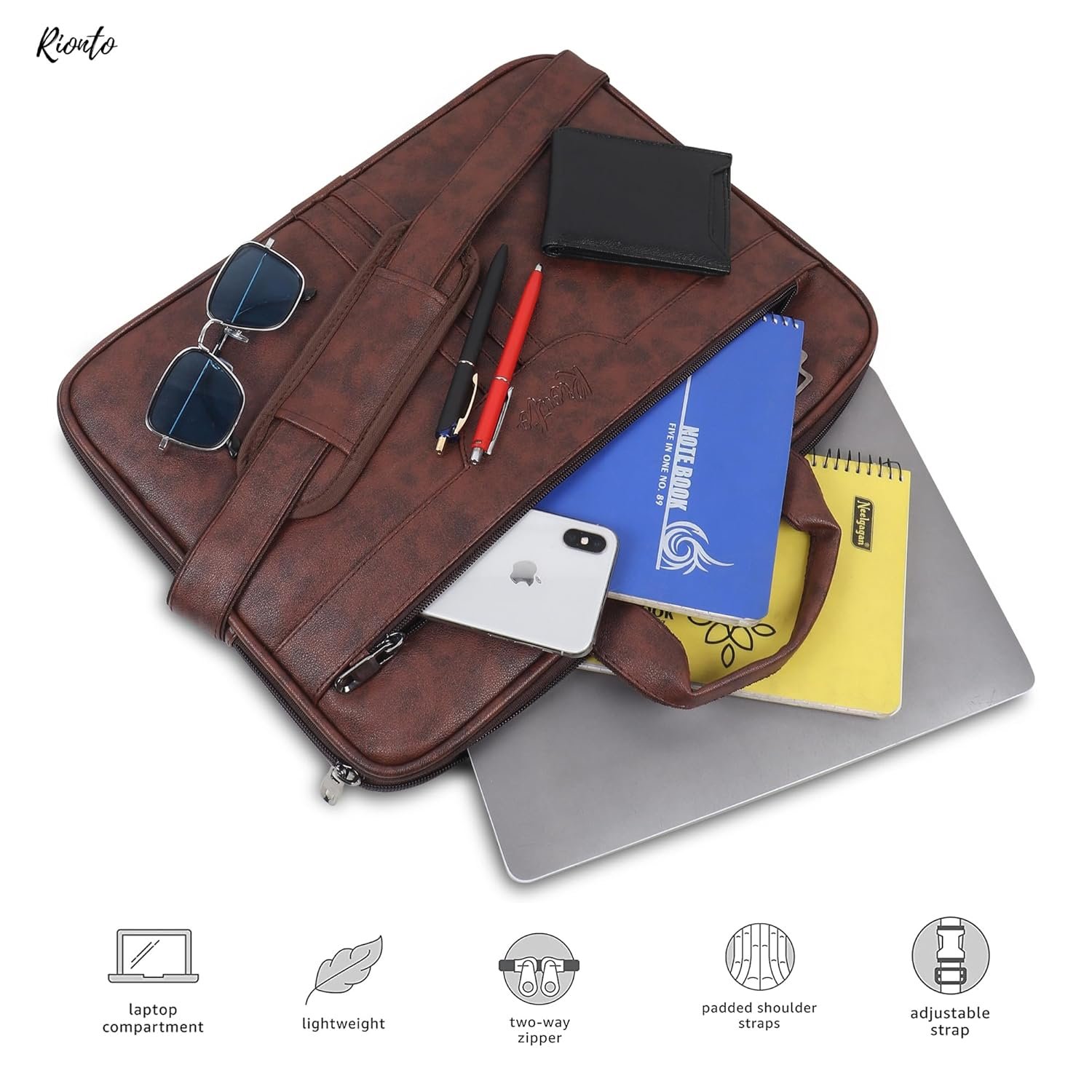 PREMIUM FUNCTIONALITY FOR PROFESSIONALS: Rionto laptop leather bags for men are designed to meet every office and business need bags. From stylish office bags for men, lap top bag for men, and office leather bag for men to durable corporate laptop bag men options, it fits seamlessly into your workday. With space for a 15.6 inch laptop bag, versatile use as a laptop briefcase, sling laptop bag for man, or even a hand bag for men, this all-in-one laptop office bag for men also makes an excellent corporate gift or office gifts for men.
