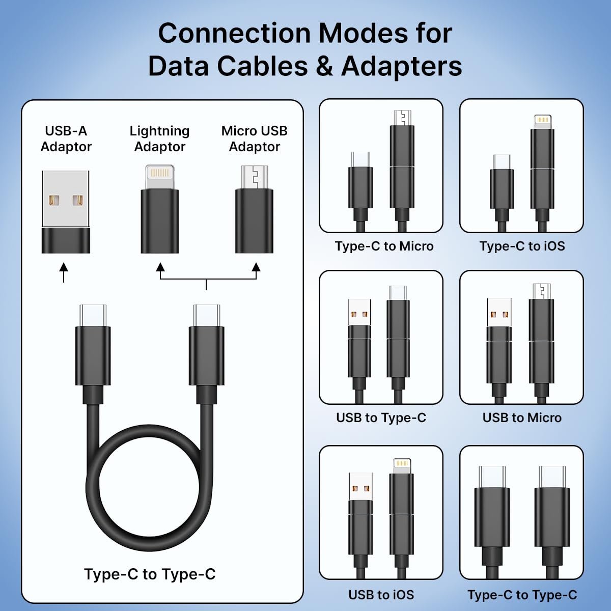 pTron Nexo 60W Multifunctional Fast Charging Data Cable Kit w/Conversion Set USB A & Type C to Male Micro/Type C/iOS, Data Transfer, SIM Storage, SIM Eject Pin, Pocket Mirror & Phone Holder (Black)