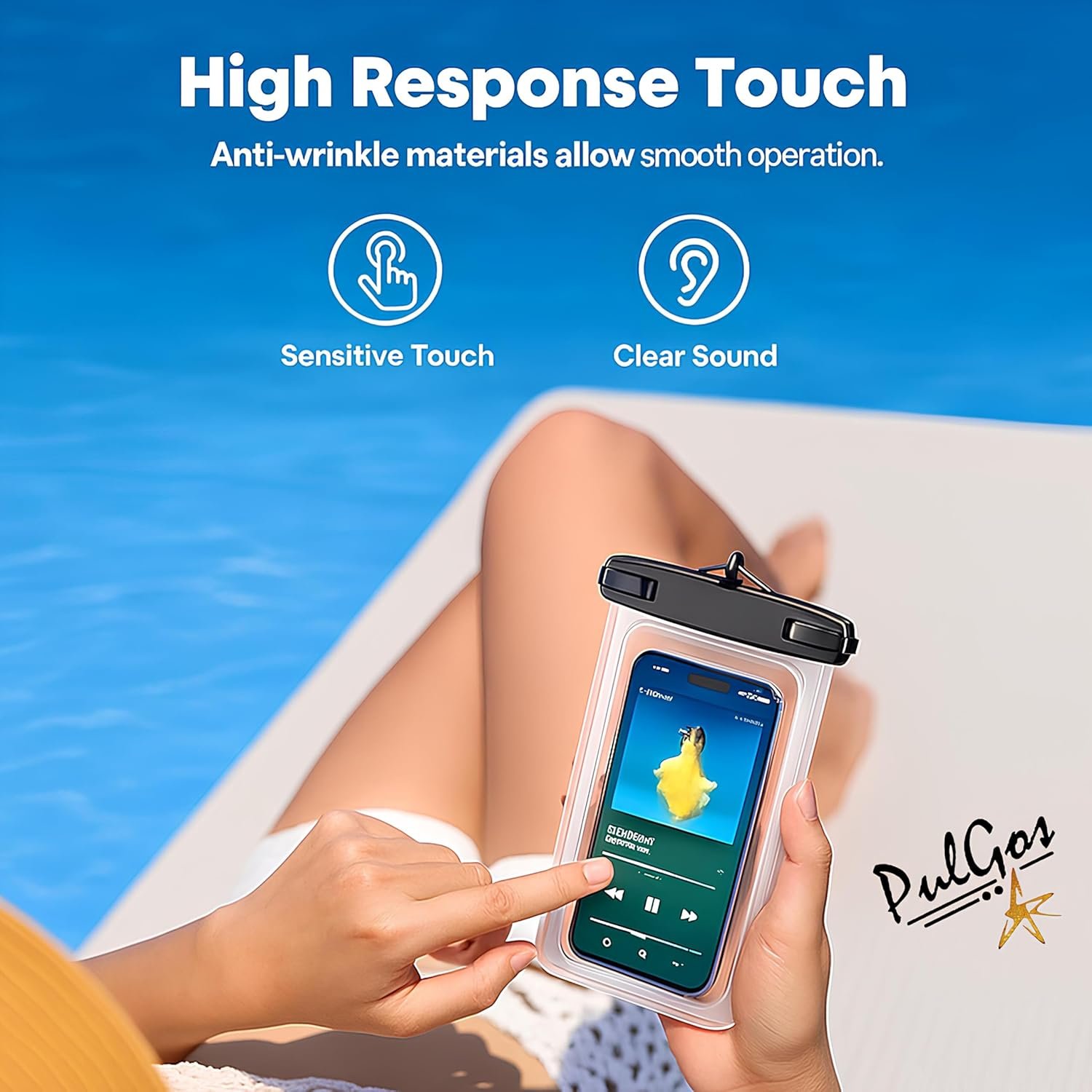 Touchscreen Friendly: The highly responsive TPU material allows full touchscreen functionality,water proof phone pouch enabling users to text, browse, and take photos or videos underwater without removing the phone from the pouch.