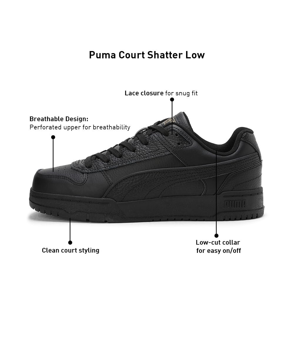 Product Story: These kicks are all about clean court styling with a modern twist. Featuring a perforated upper for breathability and a low-top design for that classic look, they’re perfect for dominating that casual street style. With their sleek silhouette and lacing for a secure fit, these sneakers are a must-have for any sneakerhead looking to up their game. Details: Heel type: Flat Shoe width: Regular fit Heel-to-toe-drop: 0 mm Shoe pronation: Neutral Low boot Synthetic upper EVA outsole Low-cut collar for easy daily wear PUMA Formstrip on lateral side PUMA Wordmark at tongue