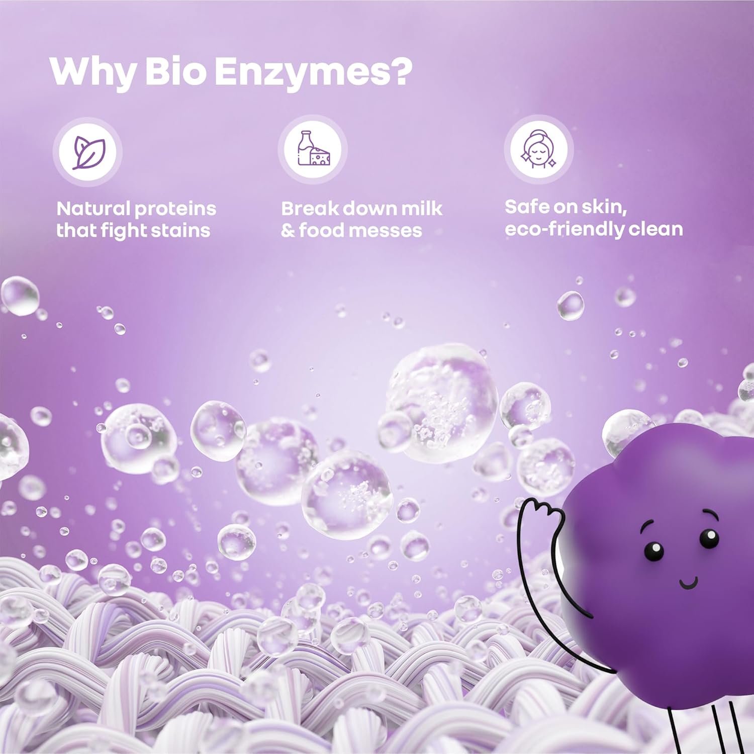 Effective Stain Removal: This Baby liquid detergent comprises bio-enzyme power with the presence of enzymes like protease, lipase, and amylase. They dig through the protein-based and fatty stains, lifting them away even at lower washing temperatures.