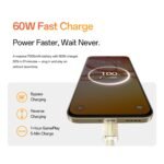 Despite the huge battery, the realme 15T 5G smartphone supports 60W wired fast charging. This technology can replenish a significant amount of power in a very short time, capable of charging the massive 7000mAh battery from 0% to 50% in just about 30 minutes. Even if you forget to charge it, utilizing short periods like during your morning routine or breakfast can provide enough power to last for most of the day, greatly enhancing convenience.