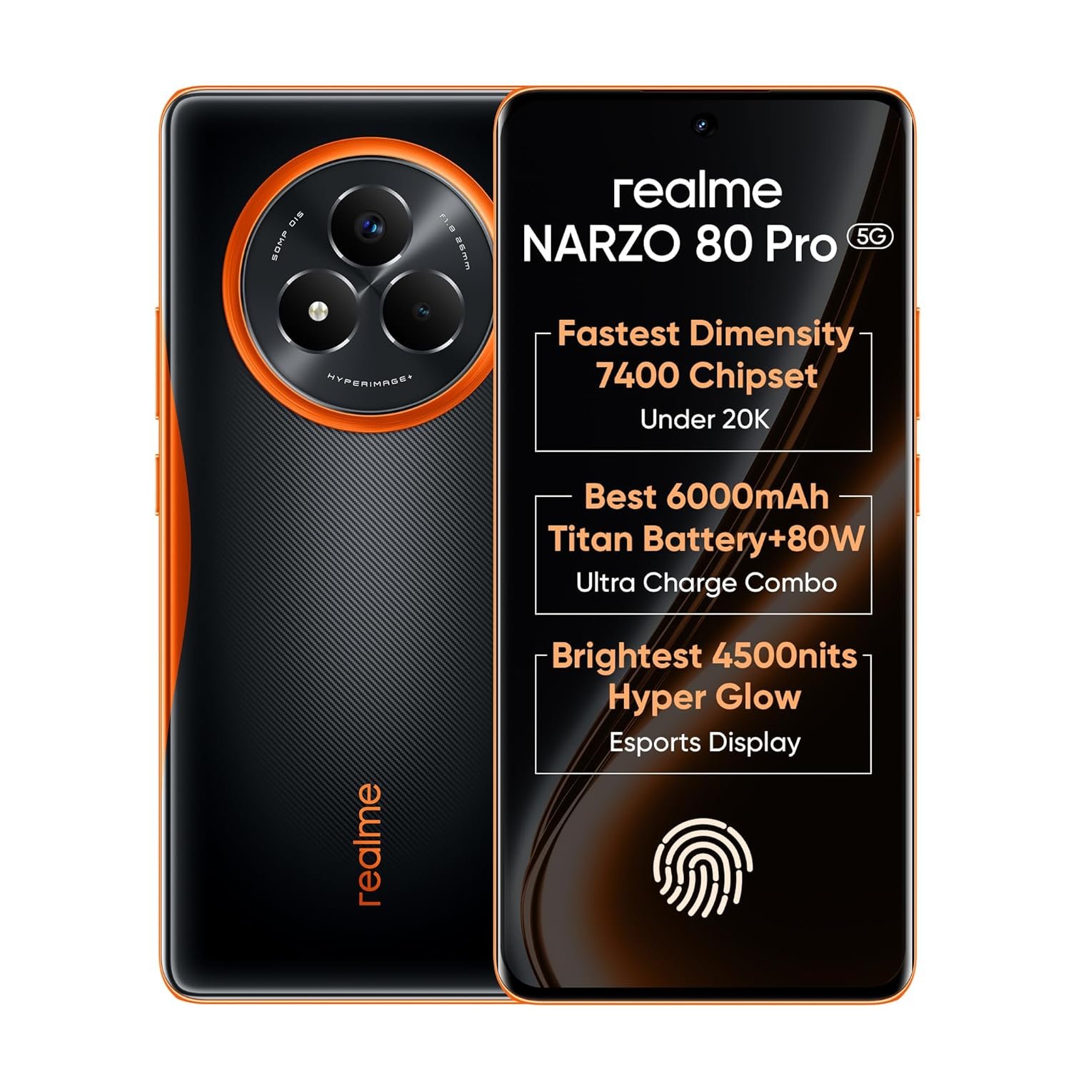 Uninterrupted Gaming: 6000mAh Titan Battery + 80W Ultra Charge – Power up in minutes, win for hours