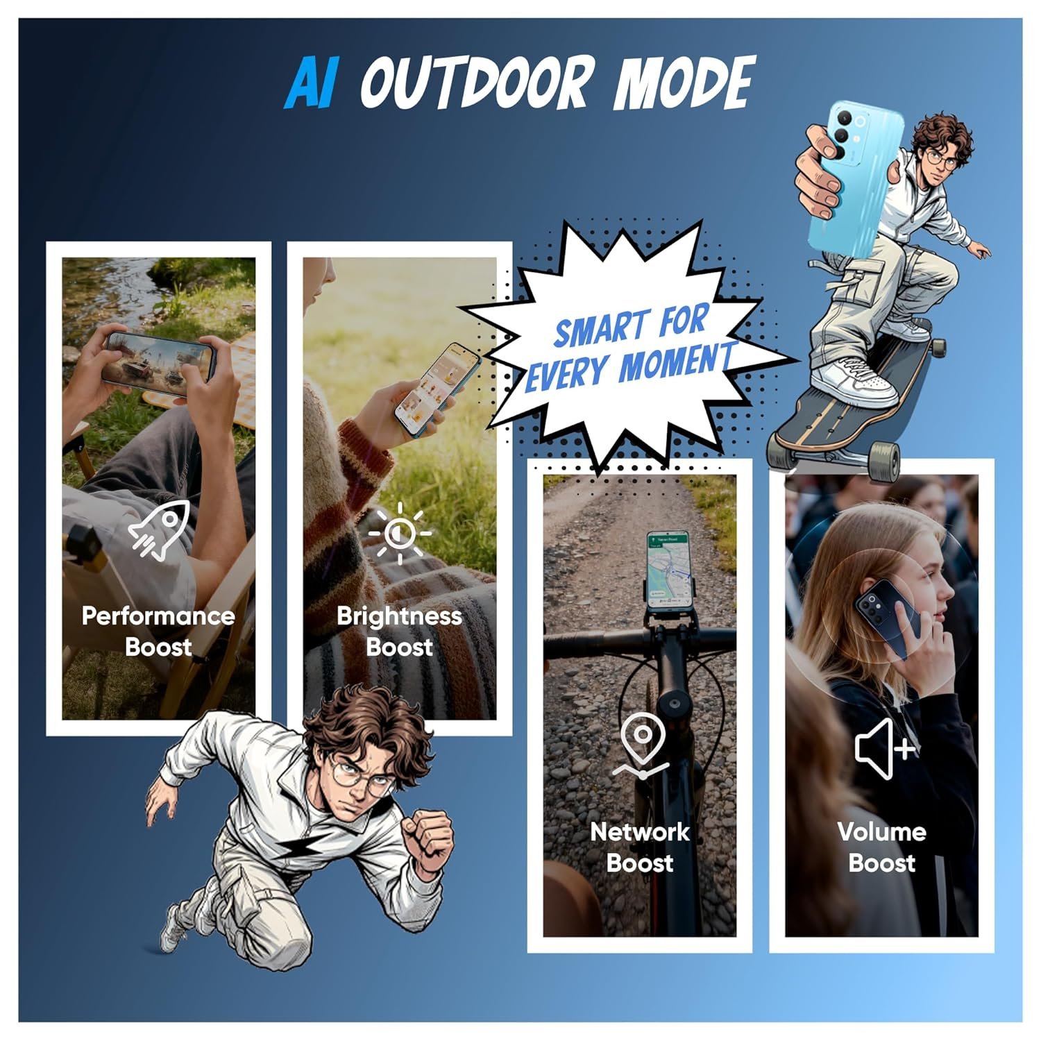 AI Edit Genie & Smart AI Modes: Edit photos instantly—just describe and let AI do the magic. Smarter outdoor performance with boosted smoothness, network, and brightness.