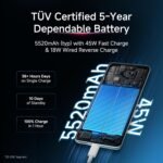 Snapdragon 6 Gen 3 + 5520mAh EV-Grade battery + 45W fast charging gives you faster performance, longer hours, quick top-ups.
