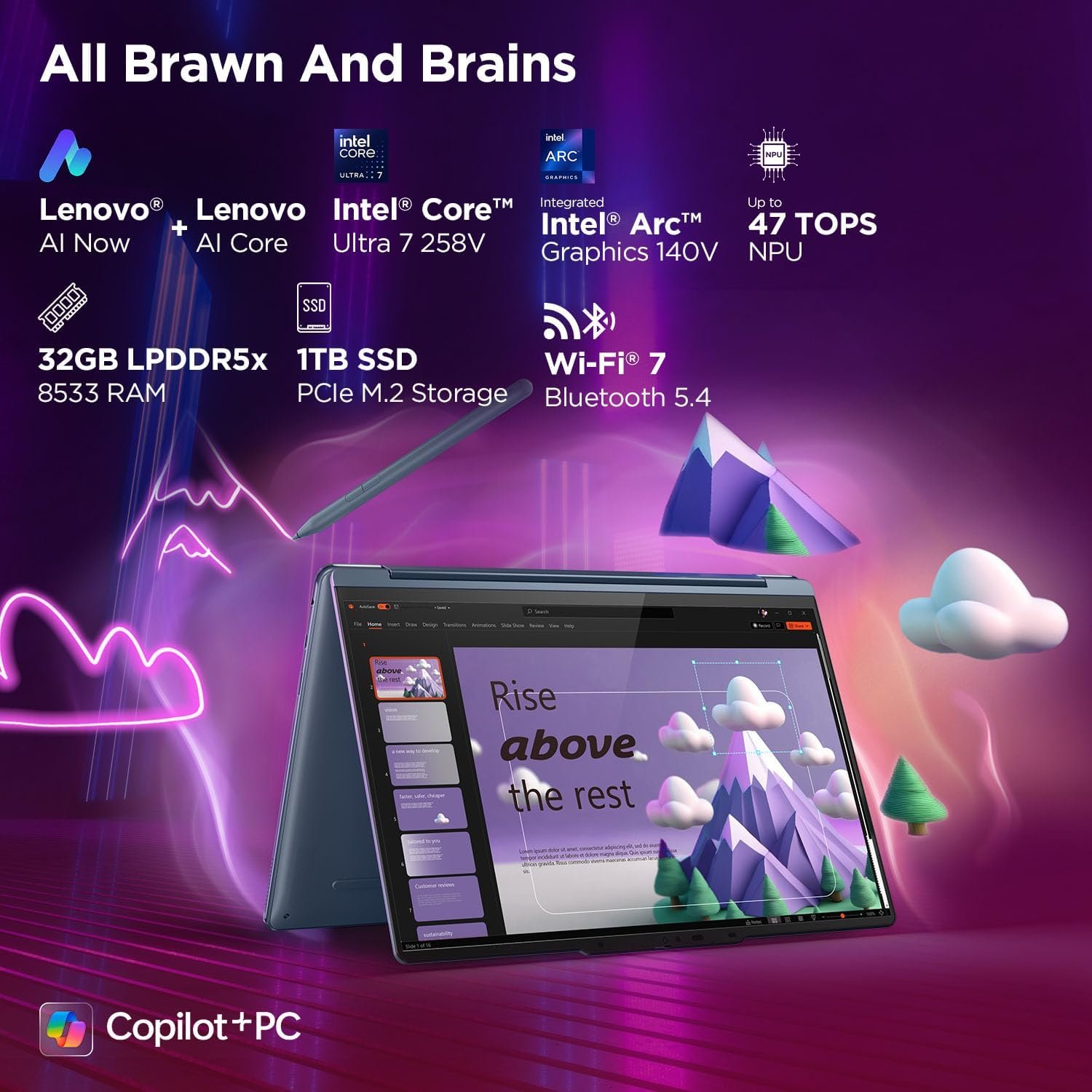 AI Processor: Intel Evo Core Ultra 7 258V | 8C (4P + 4LPE) / 8T, Max Turbo upto 4.5GHz, 12MB | NPU: Integrated Intel AI Boost, up to 47 TOPS