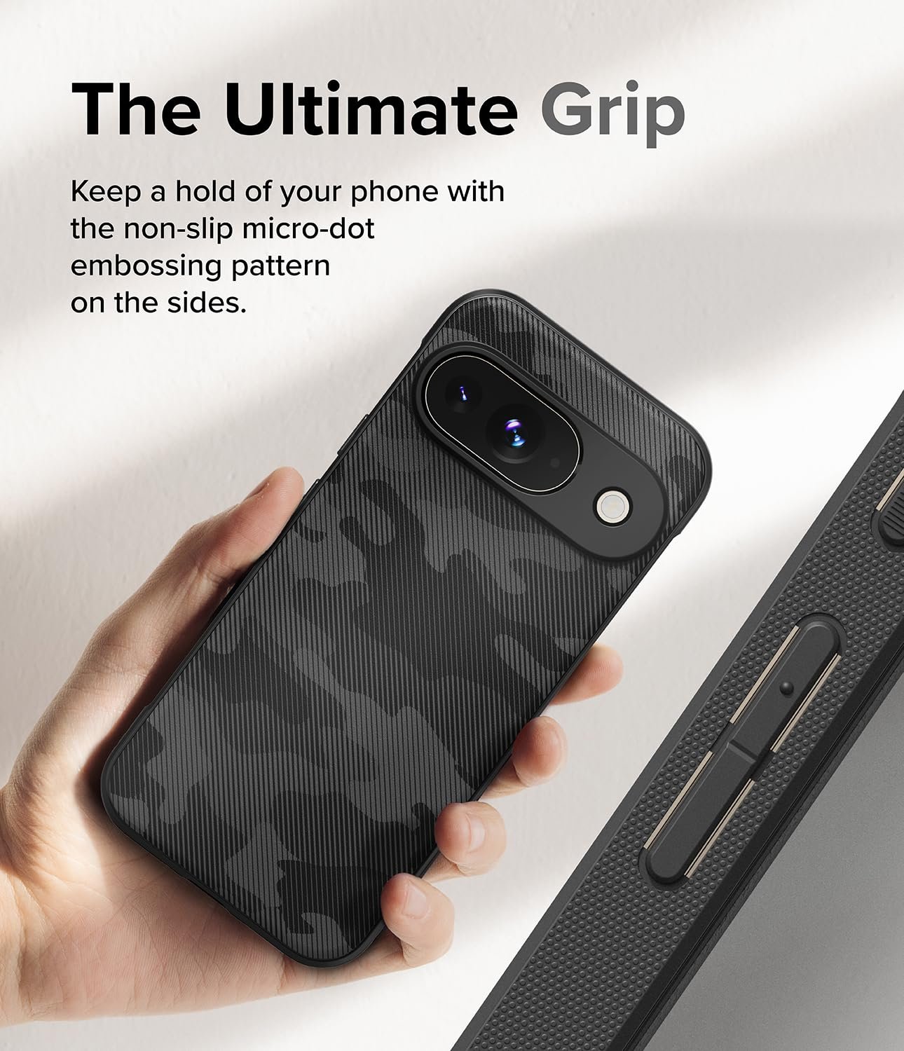 Grip Control : The rugged exterior TPU bumper provides boosted grip control for comfortable handling.