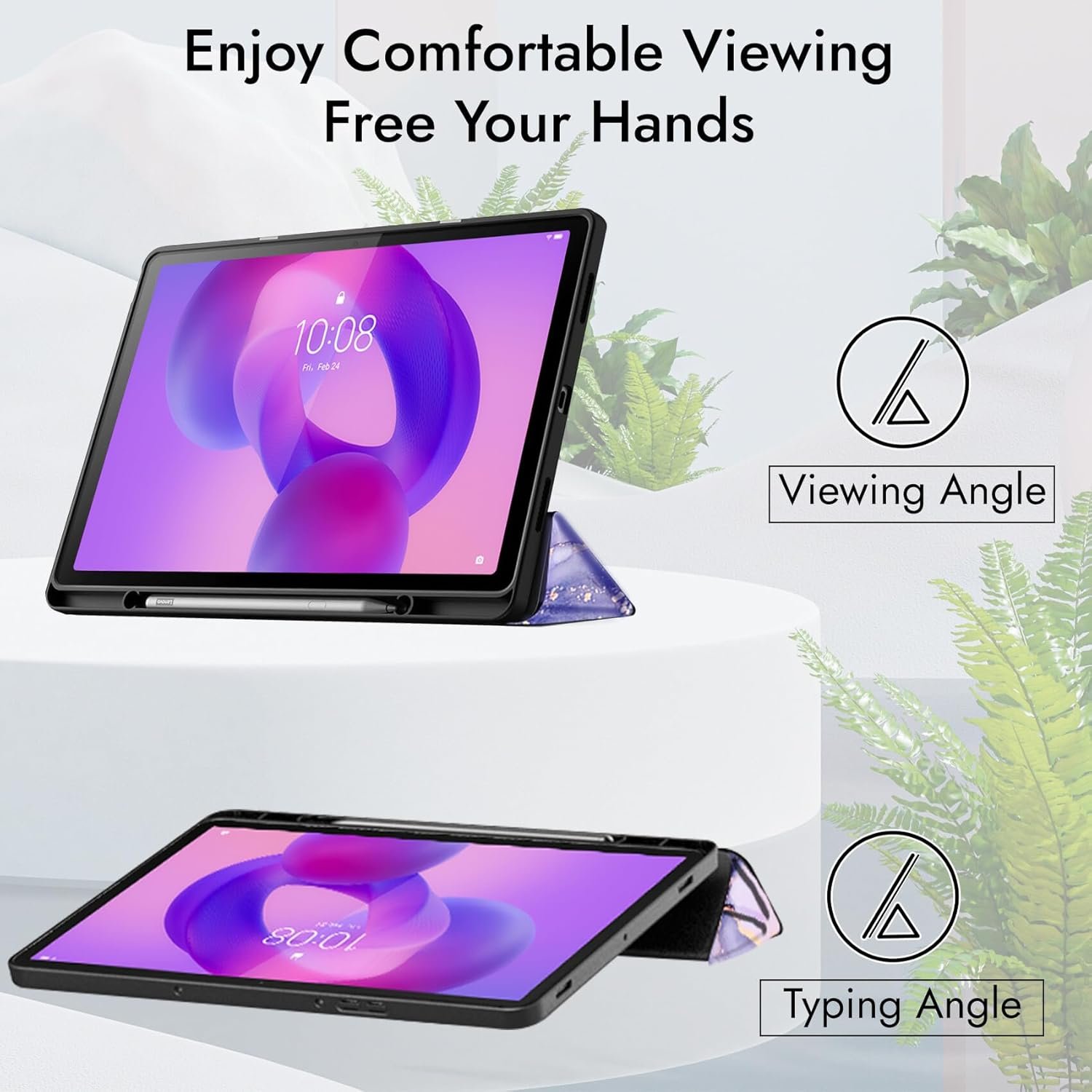 [Design]: Sleek and Classy Trifold Design. Keep Your tablet in viewing mode or typing mode with this cover.