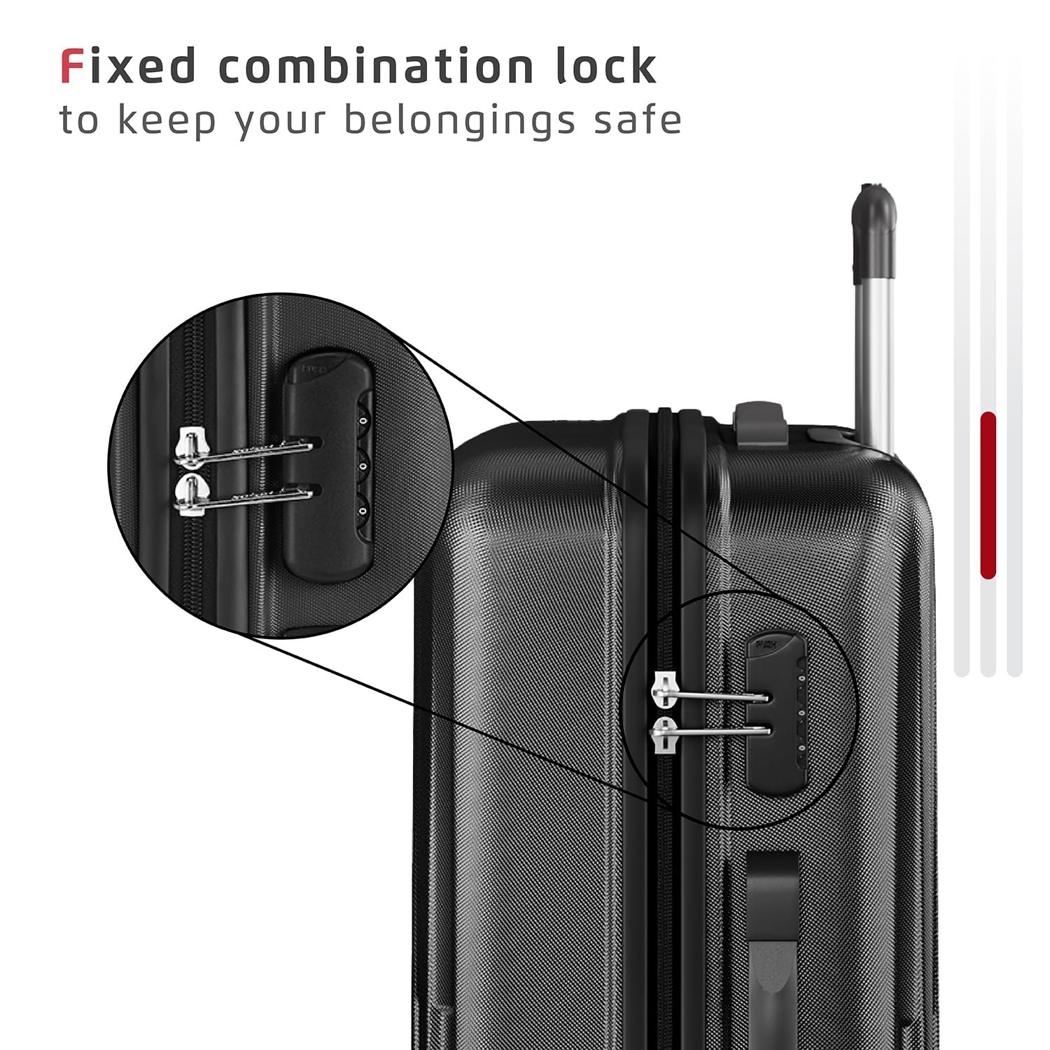 The bag comes with a combination Lock and multi-stage telescopic trolley
