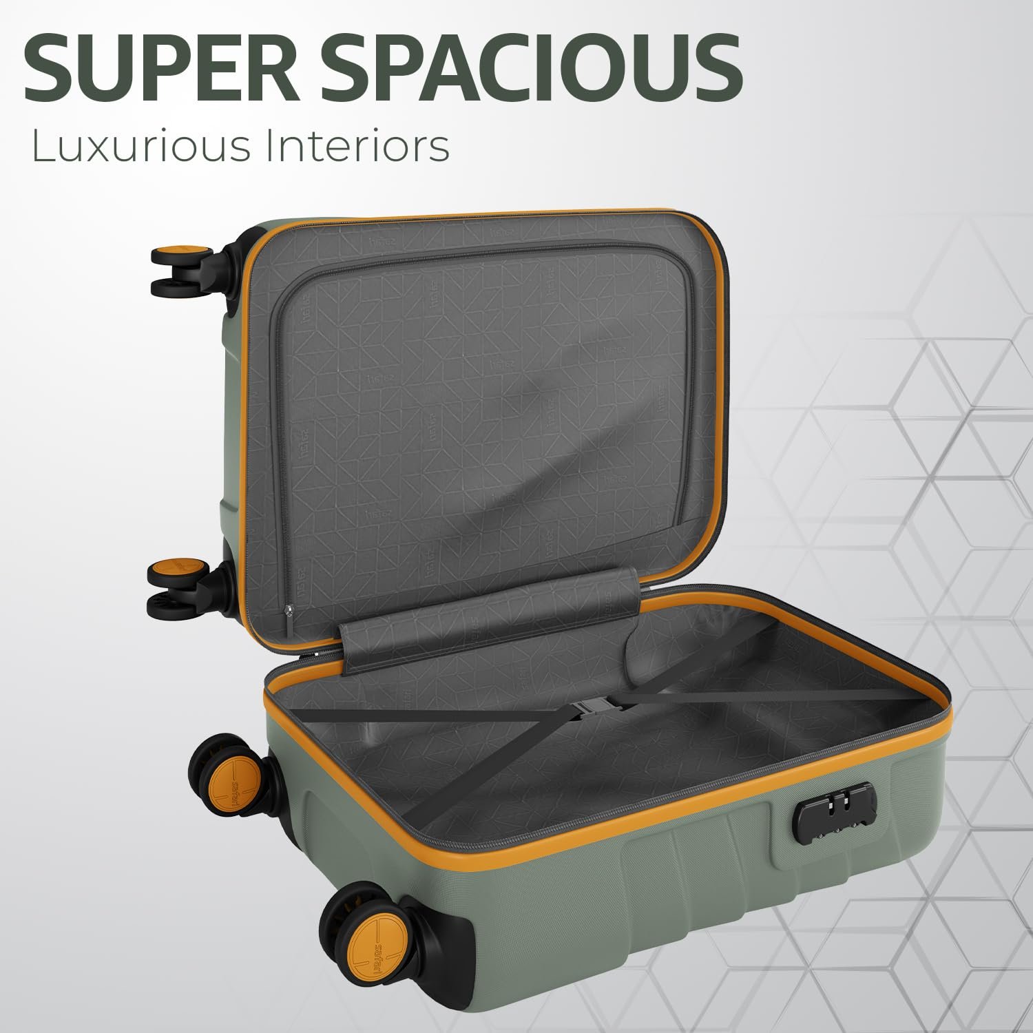 Secure Locking System & Luxurious Interiors: The integrated combination lock ensures your belongings are secure. The elegant interior lining adds a touch of sophistication to this suitcase.
