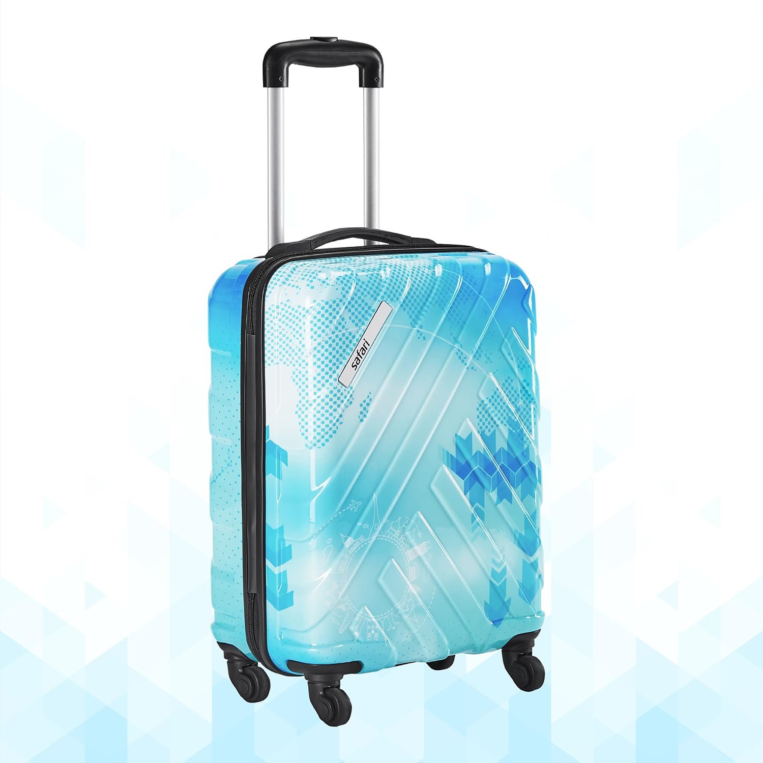 Safari RAYVOYAGE 55 Cms Cabin Trolley Bag Hard Case Polycarbonate 4 Wheels 360 Degree Wheeling System Luggage, Trolley Bags for Travel, Suitcase for Travel, Printed Blue