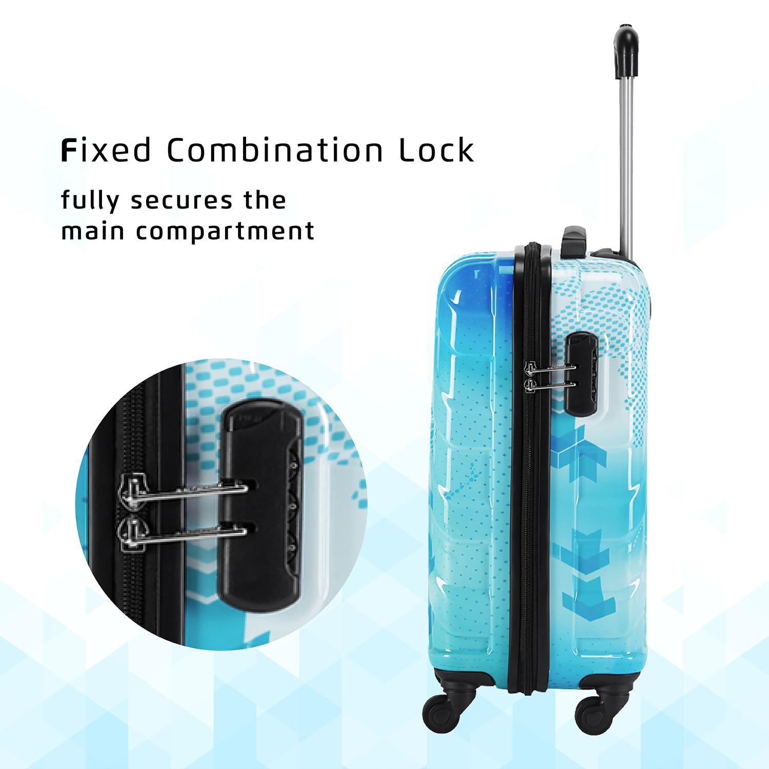 Fixed Combination Lock to keep your belongings secure. Textured Polycarbonate Sratch Resistant Shell