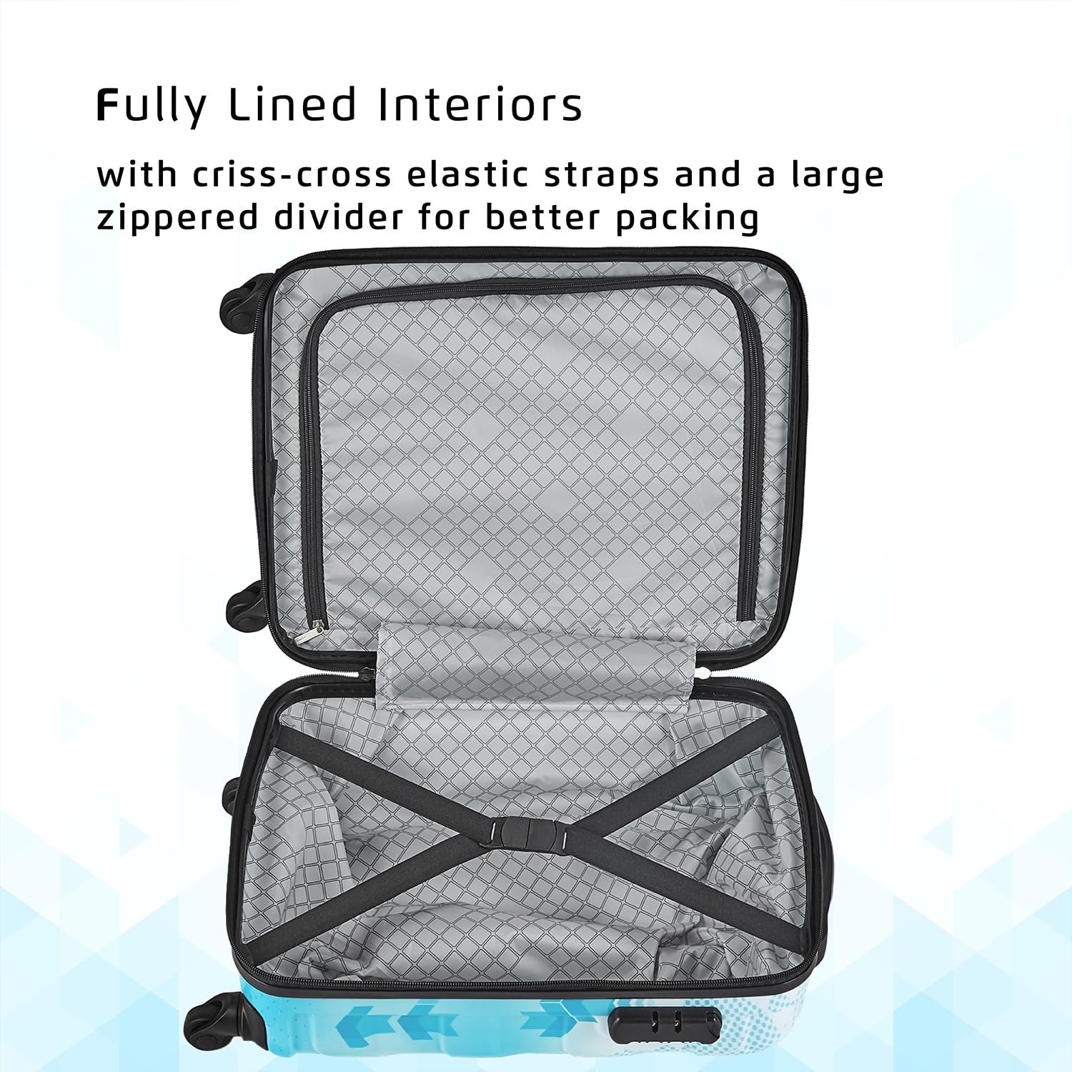 Compact Cabin luggage: With dimensions suited for carry on bags for flights, this suitcase is perfect for quick getaways. Breeze through the airports with ease and say goodbye to baggage fees, because this cabin trolley bag is all you need.