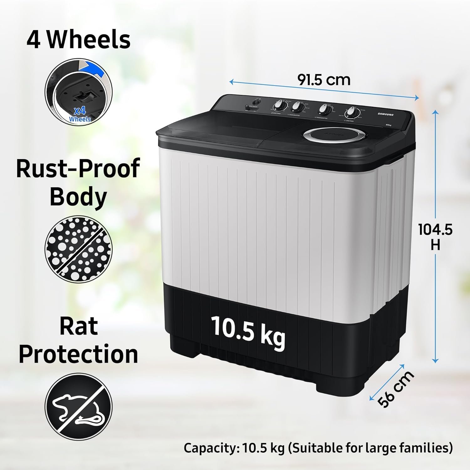 Capacity 10.5 kg: Suitable for large families | Water Pressure: (0.05~0.3MPa)(0.5~3.0kg.f/cm²) | Water Consumption : Refer to BEE label