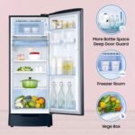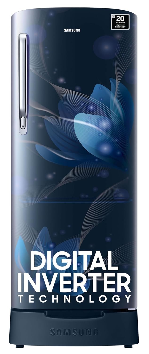 Direct Cool Refrigerator: Stylish Single Door Refrigerator with Modern Blooming Saffron Blue pattern. Enjoy powerful cooling that can last longer