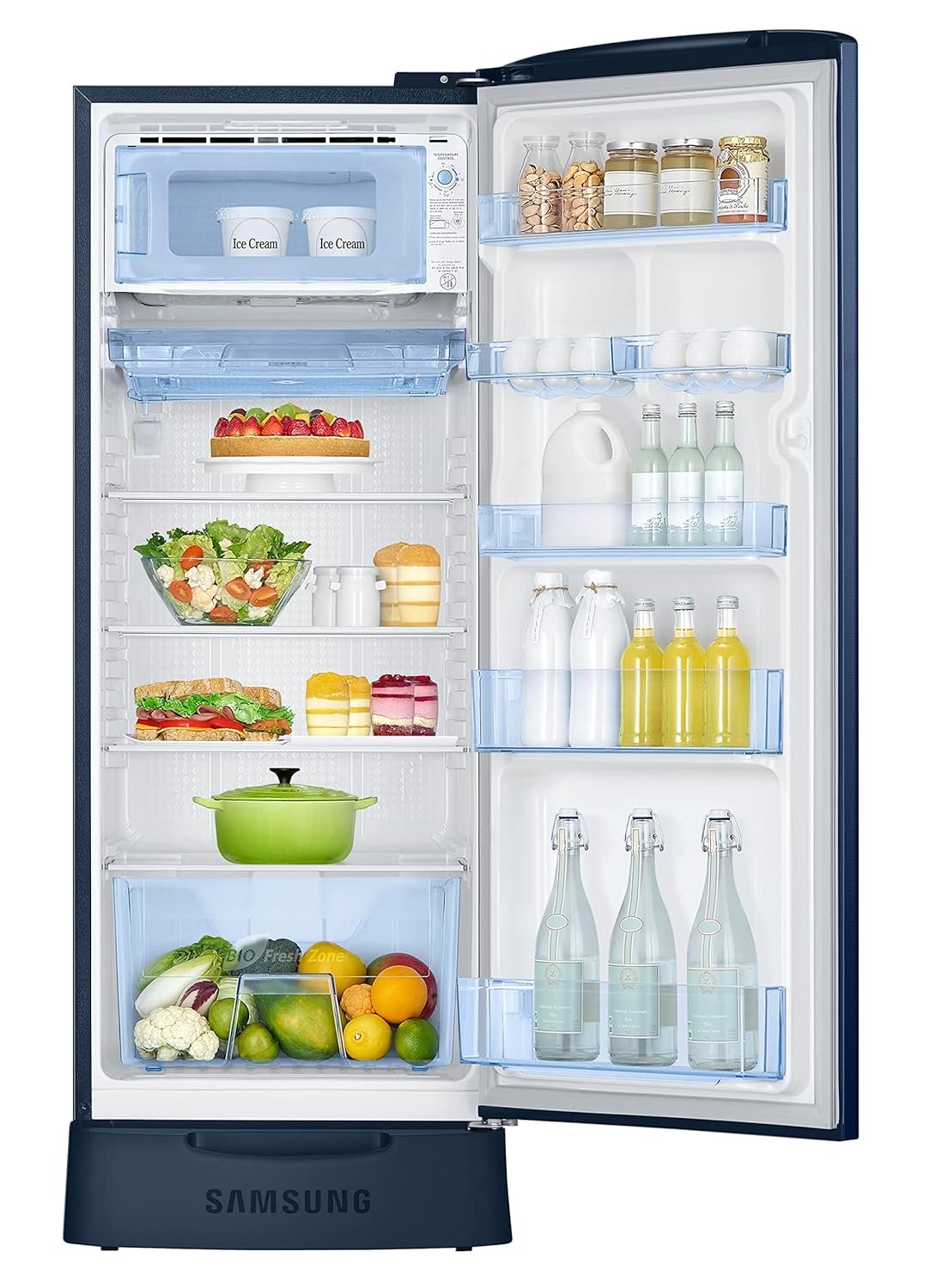 Samsung 223L 3 Star Inverter Direct-Cool Single Door Refrigerator Appliance (RR24C2823CU/NL,Camellia Blue) Base Stand Drawer 2023 Model