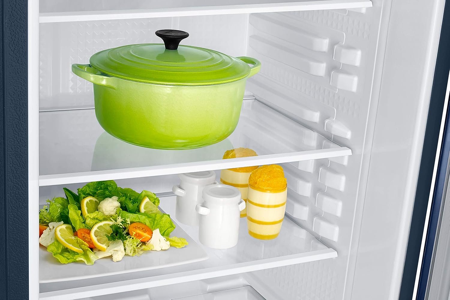 A Deep Door Guard can safely store larger bottles, bulky cartons of milk and juice and more beverage items without wasting space. It can fit in three 2L bottles and a 1L in the door at the same time.