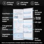Additional Features : Stabilizer Free Operation (100v – 300v) | Multi Flow | Up to 15 Days of Fresh Food | Recess Handle | Door Alarm | Veg Box | Big Bottle Guard (Deep Door Guard) | LED Light