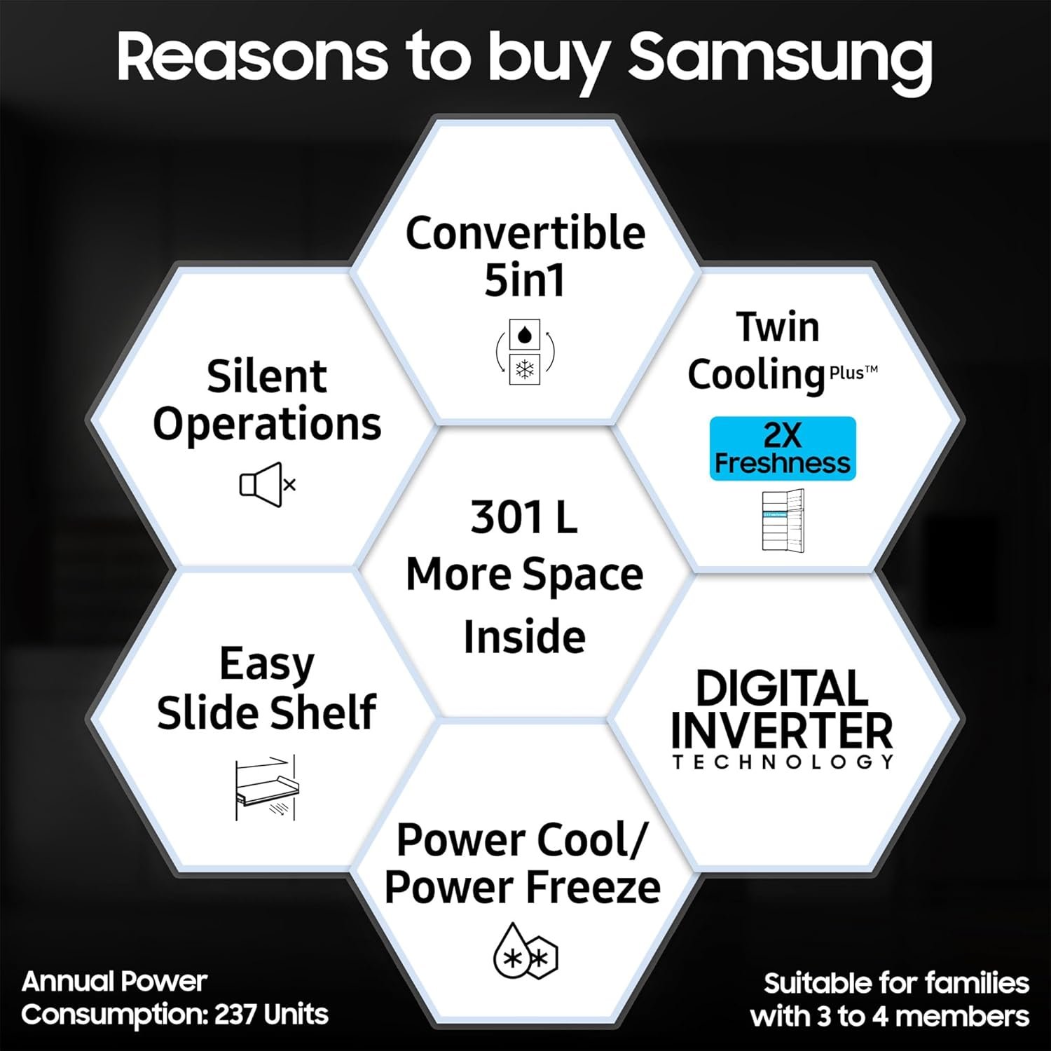 Special Features : Twin Cooling Plus | Convertible 5-in-1 | Digital Display | Power Freeze | Power Cool | Coolpack | Deodorizer