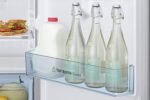 You can store big containers of milk and juice in the door, along with two rows of beverage cans.
