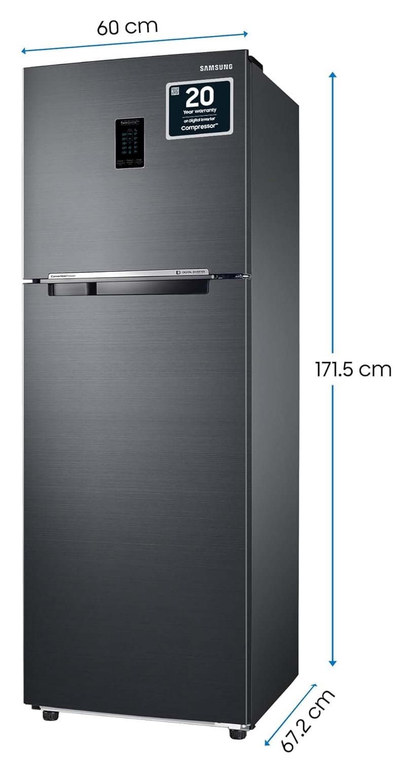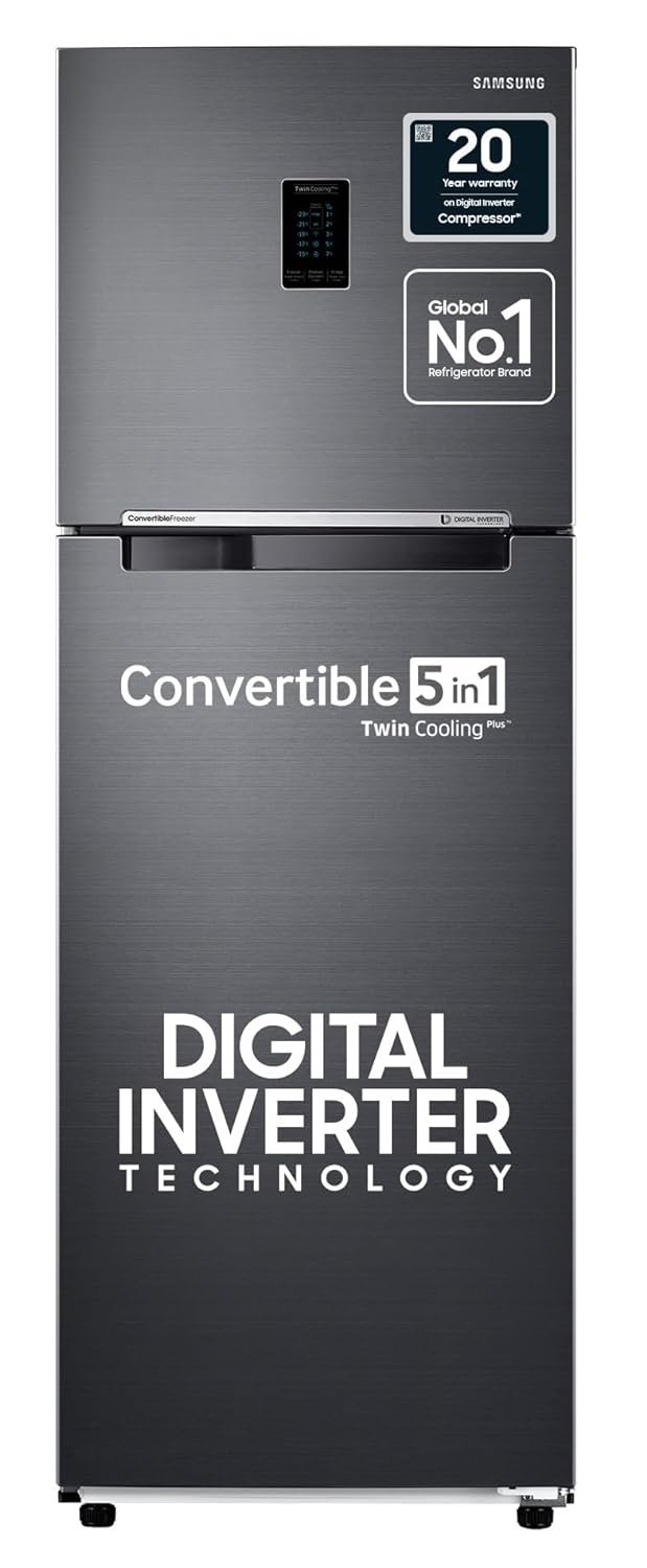 Samsung 322L 3 Star Convertible 5 In 1 Digital Inverter Frost-Free Double Door Refrigerator Appliance (RT37C4523BX/HL,Luxe Black 2023)