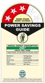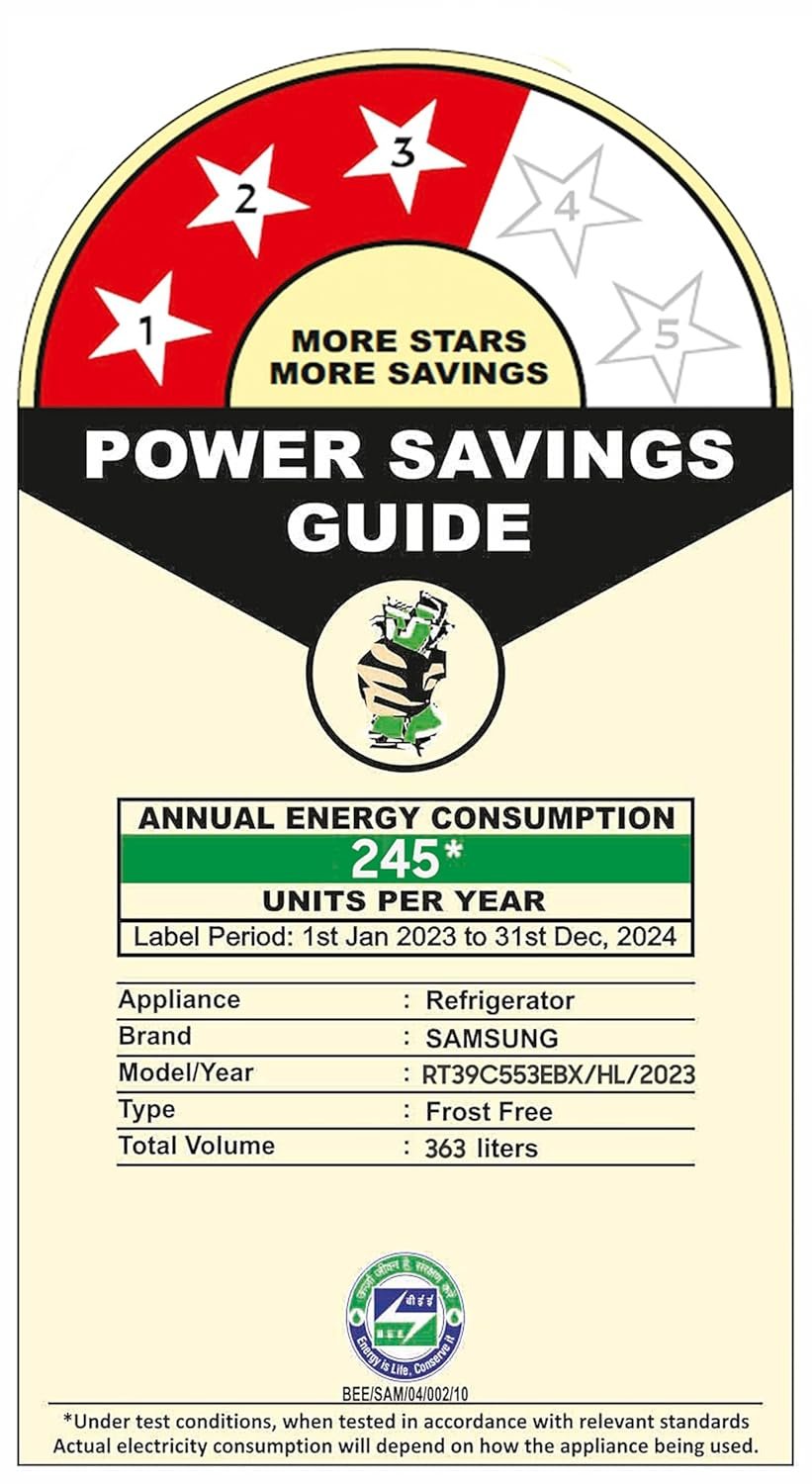 Energy Rating : 3 Star Energy Efficiency
