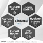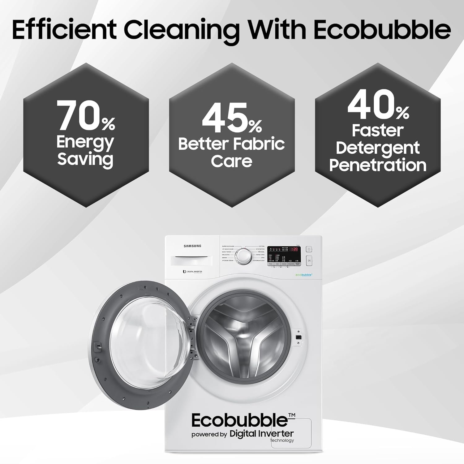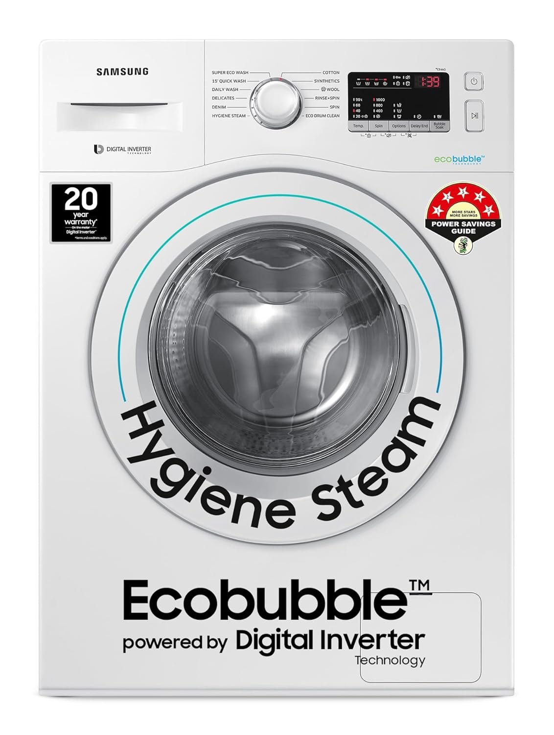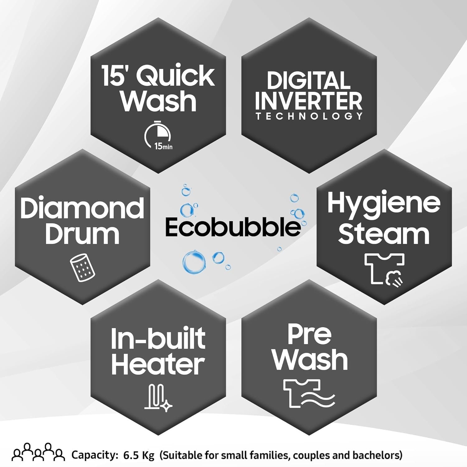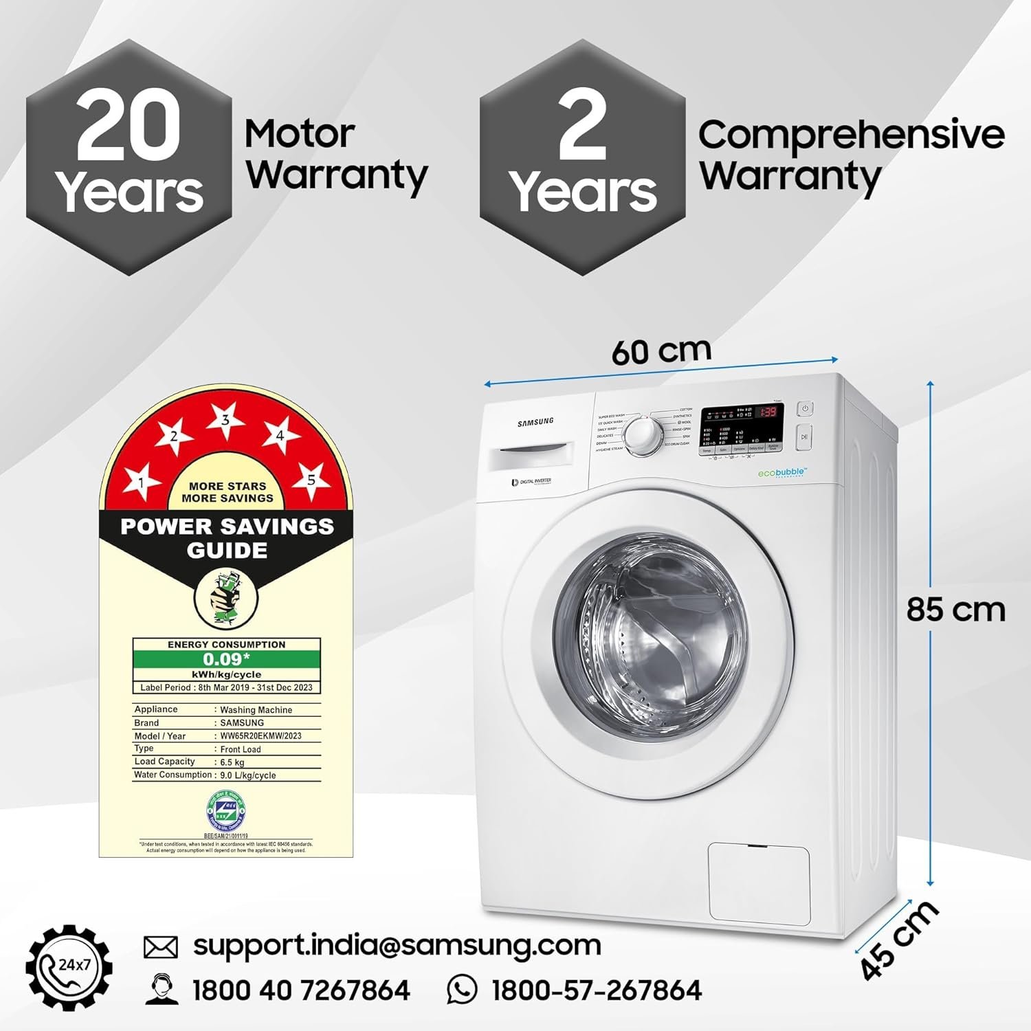 Samsung 6.5 kg, 5 star, Eco Bubble Technology, Digital Inverter Motor, Fully-Automatic Front Load Washing Machine (WW65R20EKMW/TL, Hygiene Steam, WHITE, Awarded as Washing Machine Brand of the year)