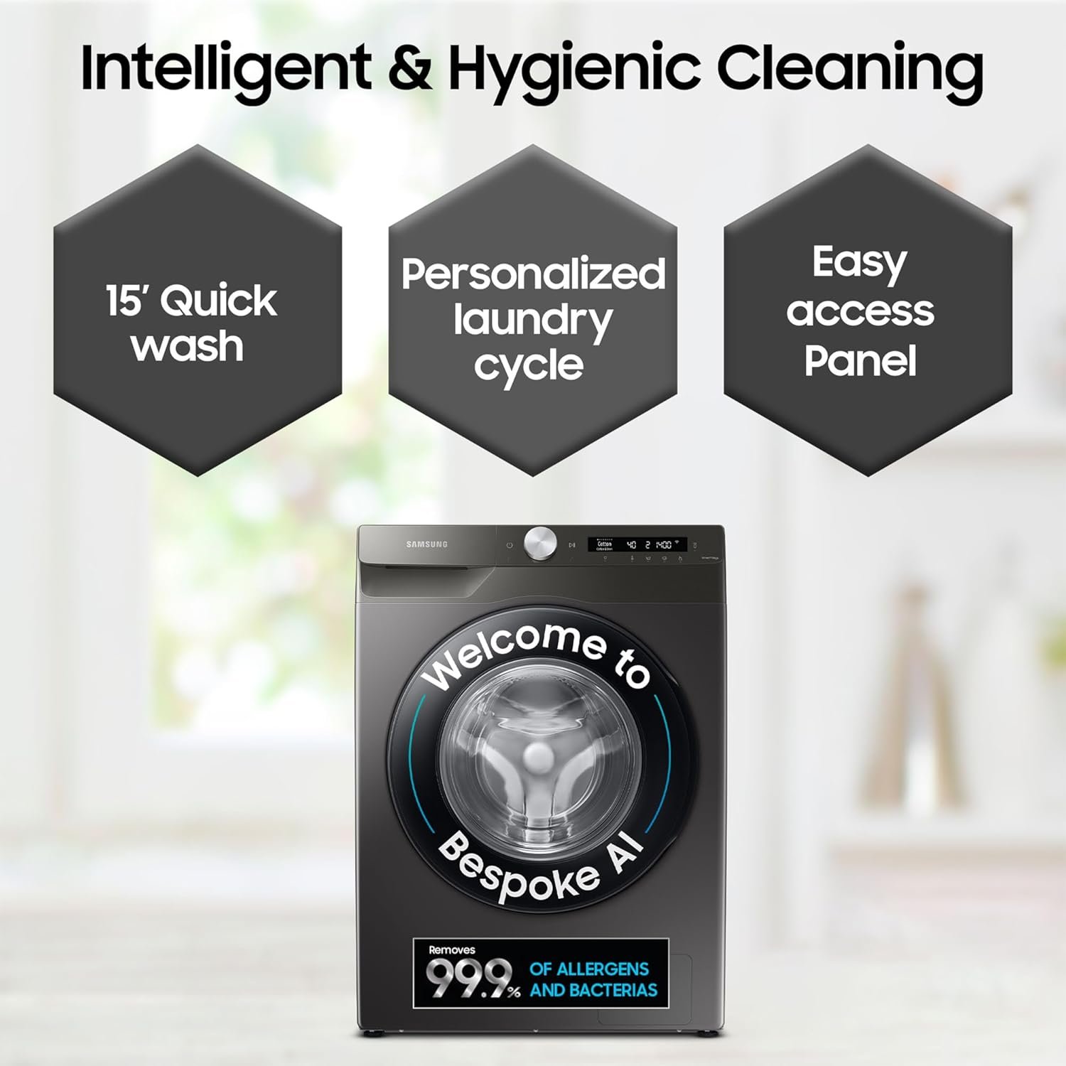 Fully-automatic front load washing machine with AI Control and Wi-Fi Technology : Best Wash Quality, Energy Savings (up to 70%) and Water efficient