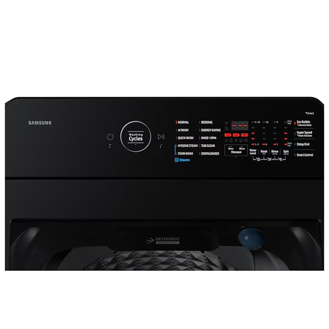 Experience the next level of laundry with the Samsung 8.0 kg Fully Automatic Top Load Washing Machine, designed with advanced AI technology and innovative features. Its AI Wash feature senses your laundry’s weight and soil level, delivering a powerful yet gentle wash every time. The Eco Bubble and BubbleStorm technology ensure deep and efficient cleaning while protecting fabric quality. With a built-in heater and Hygiene Steam cycle, eliminate 99.9% of germs and allergens for a hygienic wash. The sleek tempered glass lid, 2nd Diamond Drum, and modern Red LED display enhance both aesthetics and usability. SmartThings compatibility and Wi-Fi connectivity allow for remote monitoring and intelligent control from your smartphone.