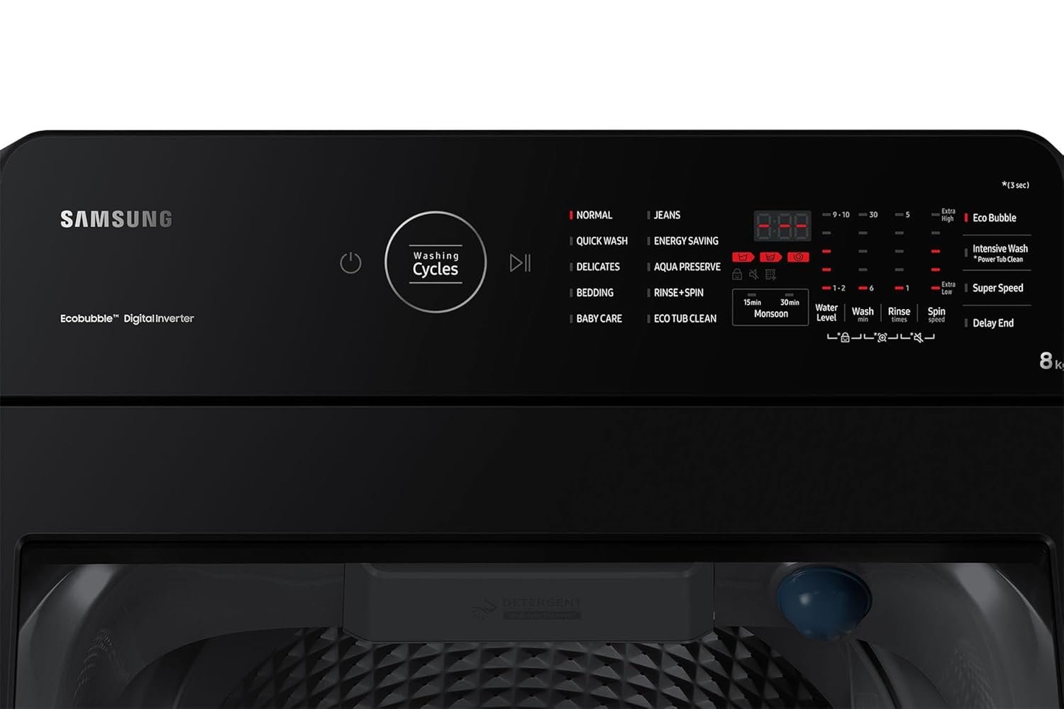 Panel Display : Red LED Suitable for hard water washing