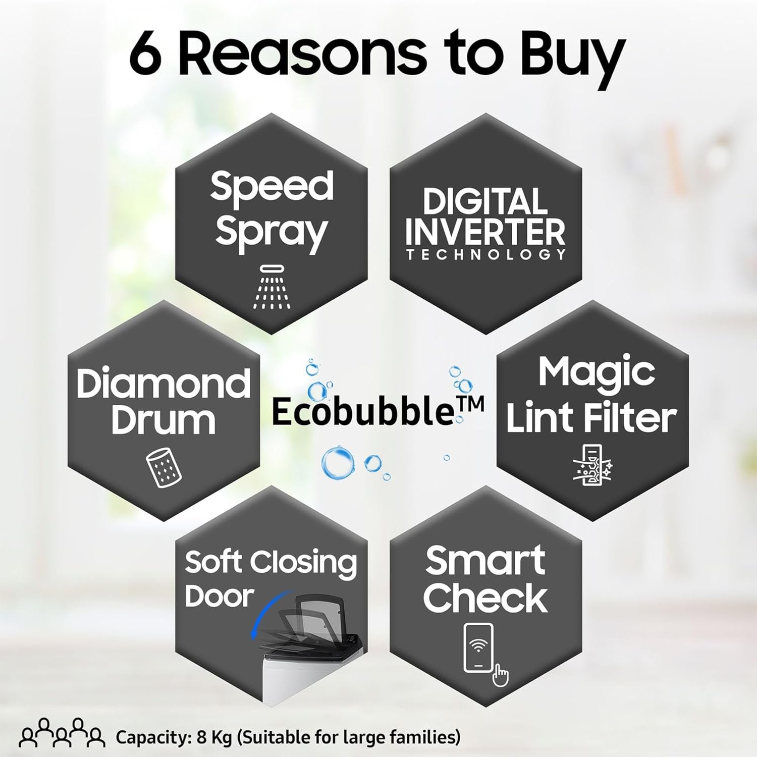 Capacity 8 kg: Suitable for large families