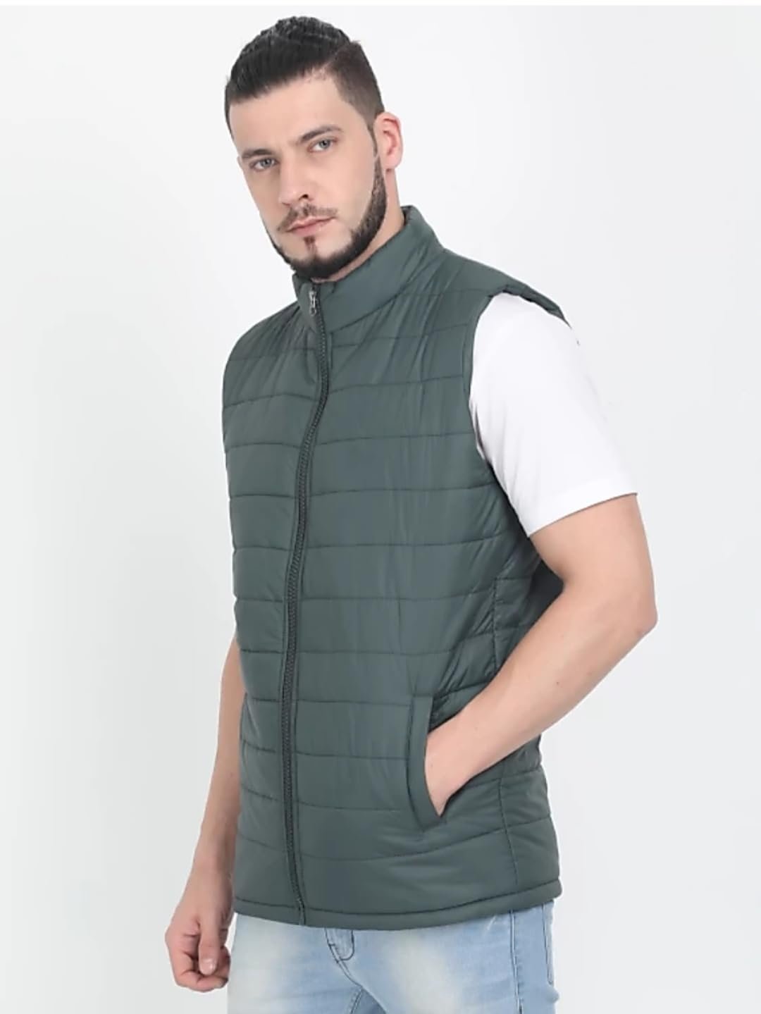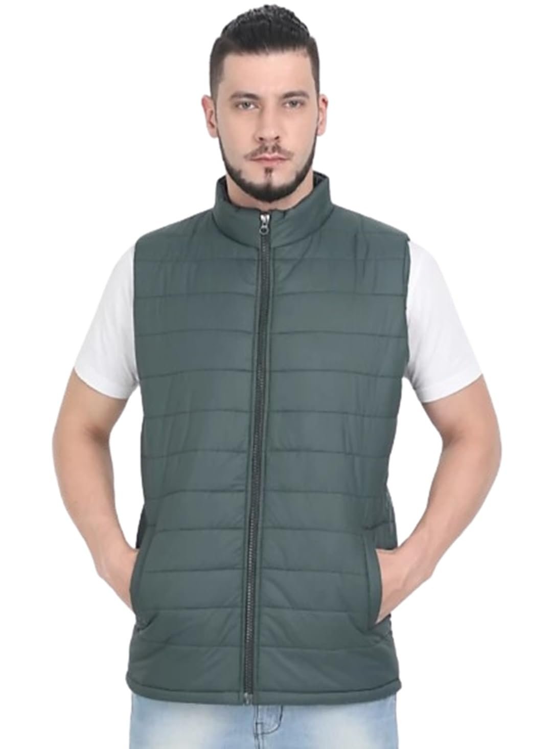 Sanhok Mens Waterproof Premium Imported Polyester Lightweight Stylish Standard Length Sleeveless Regular Fit Zipper Jacket for Winter Casual Wear