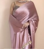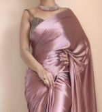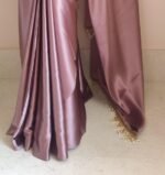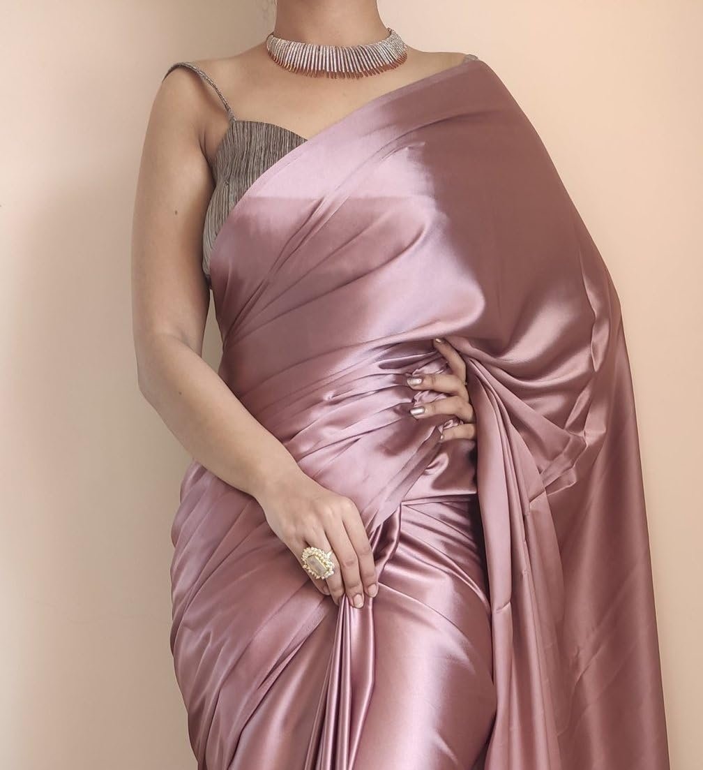 SATAZ Women’s Ready to Wear Rose Gold Satin Silk 1 Minute Pre Pleated Heavy Saree with Unstitched Rose Gold Blouse